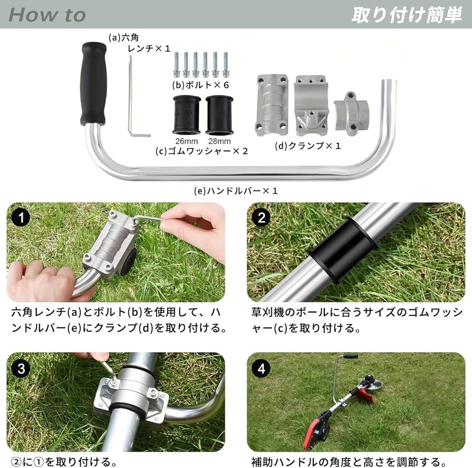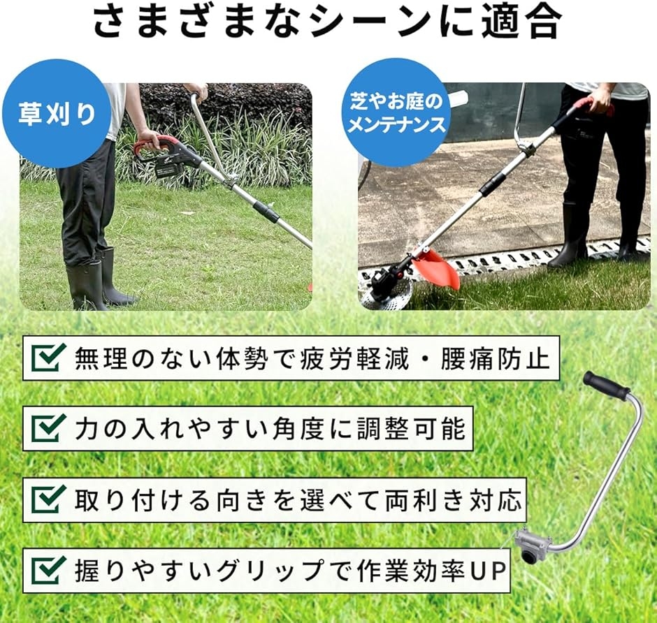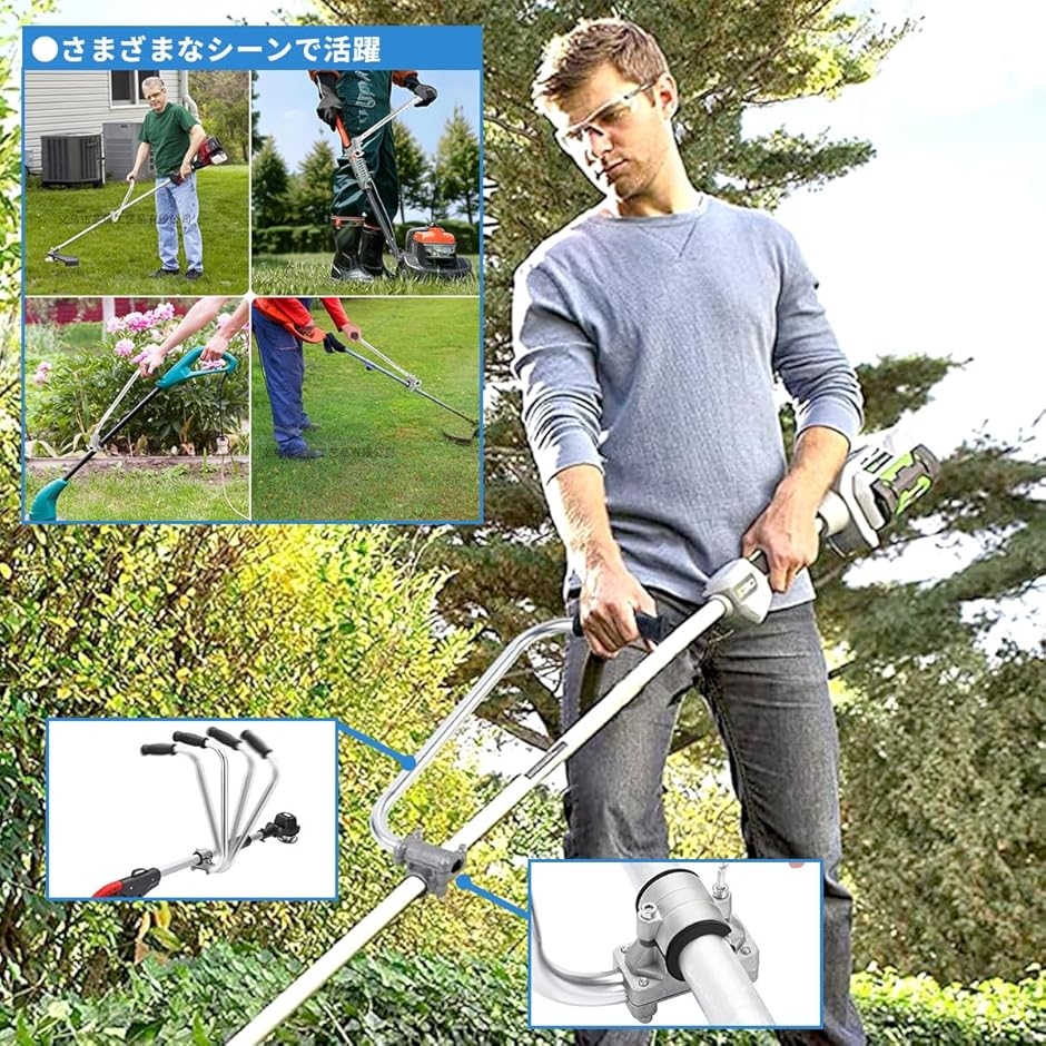 幅広いガーデニングツールとの互換性 このハンドルグリップは、芝刈り機、除草機、耕運機など、さまざまなガーデニングツールに取り付けることができます。