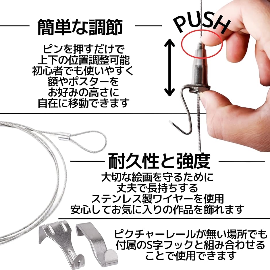 「耐久性と強度」大切な絵画を守るために丈夫で長持ちするステンレス製ワイヤーを使用。