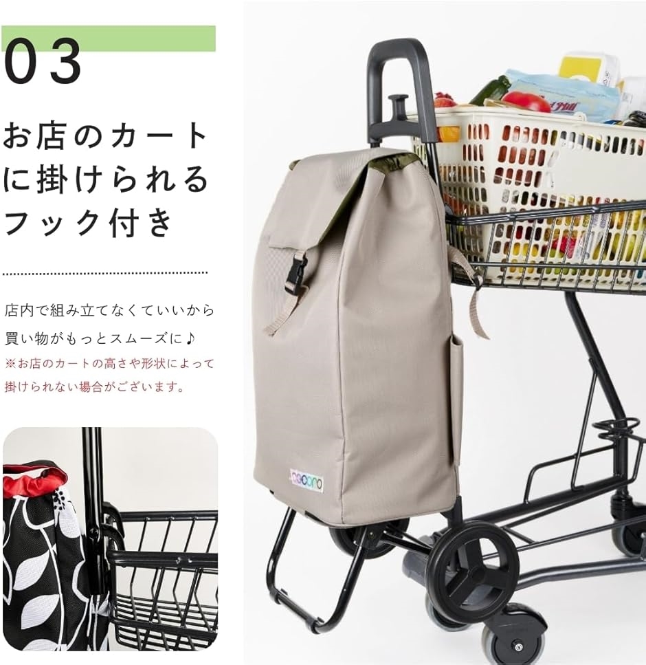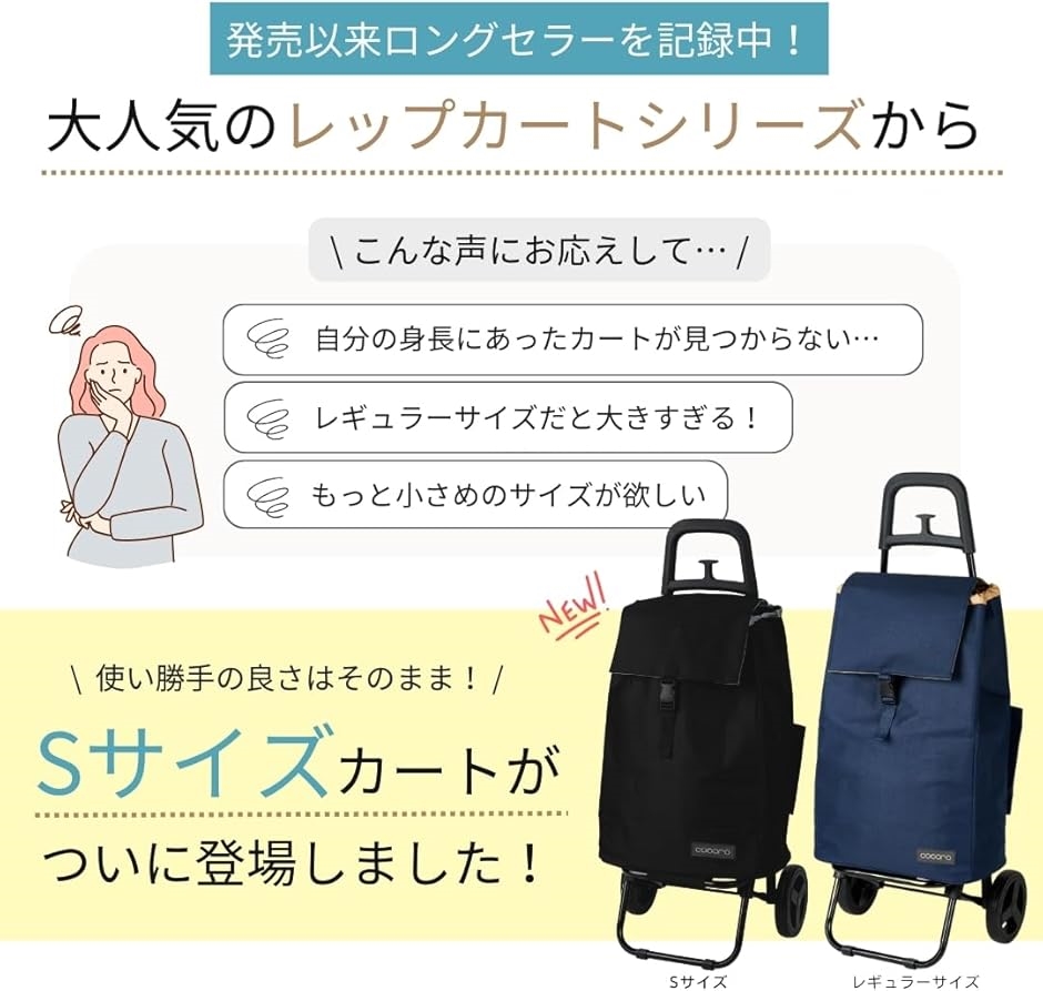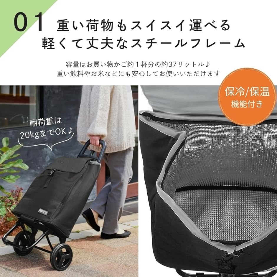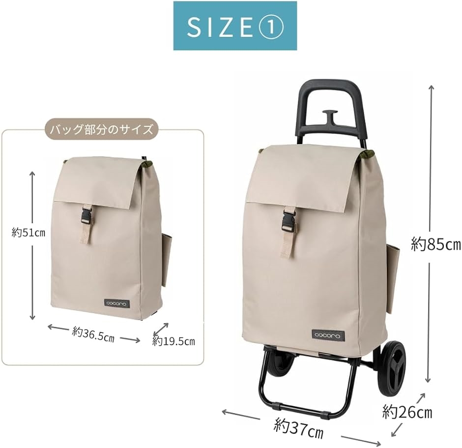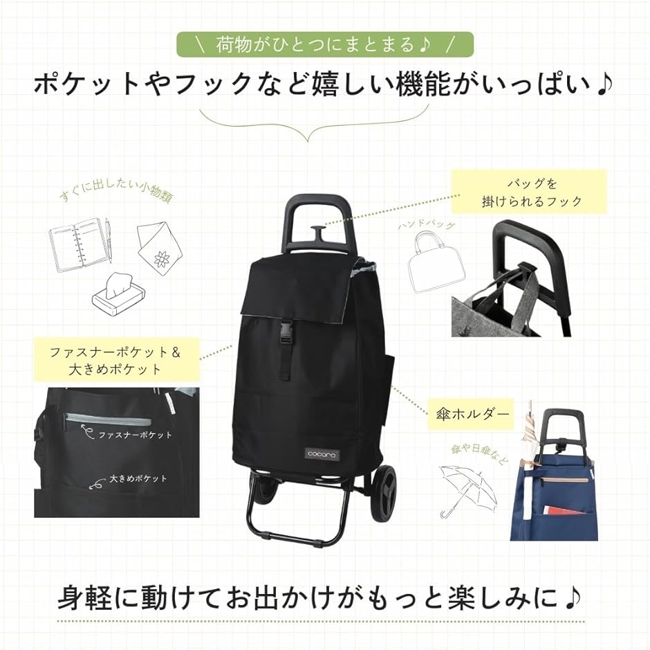 | 商品名 | ショッピングカート 買い物カート 保冷 保温 Sサイズ 軽量2kg 大容量37L 小柄な方にも使いやすい 大きなタイヤでラクラク 折り畳み式 収納 荷物フック Cocoro コ・コロ |