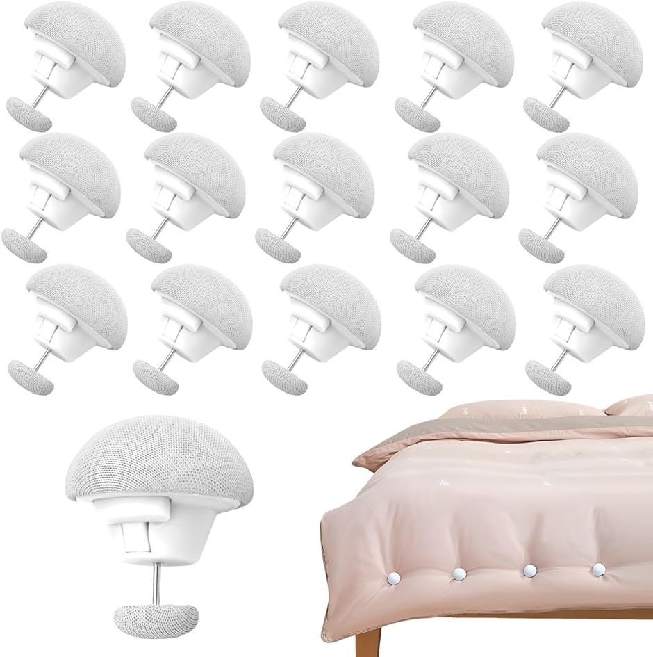 「使用方法カンタン」ピンを布団の生地に貫通させ、ボタンの丸穴に差し込むだけでしっかりと固定できる簡単設計。手軽に布団のズレを防止できます。