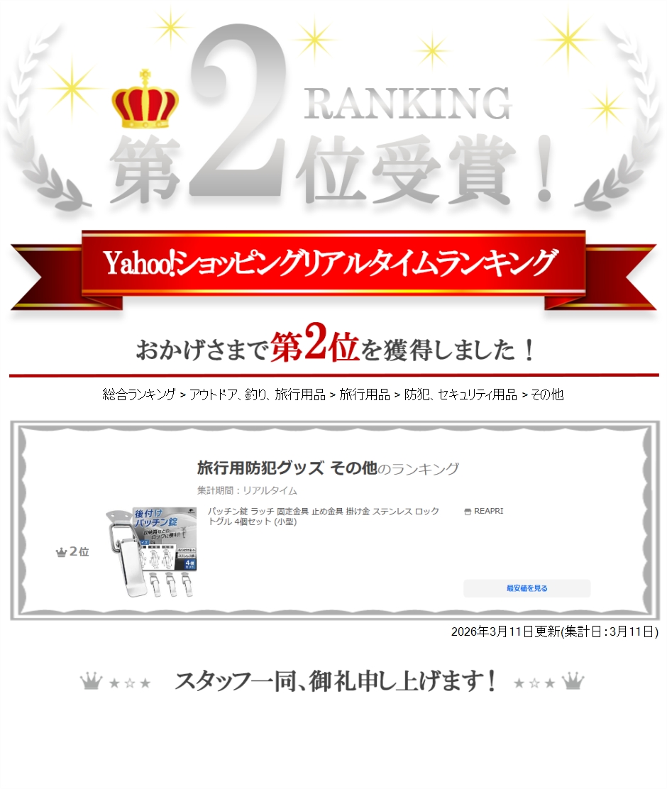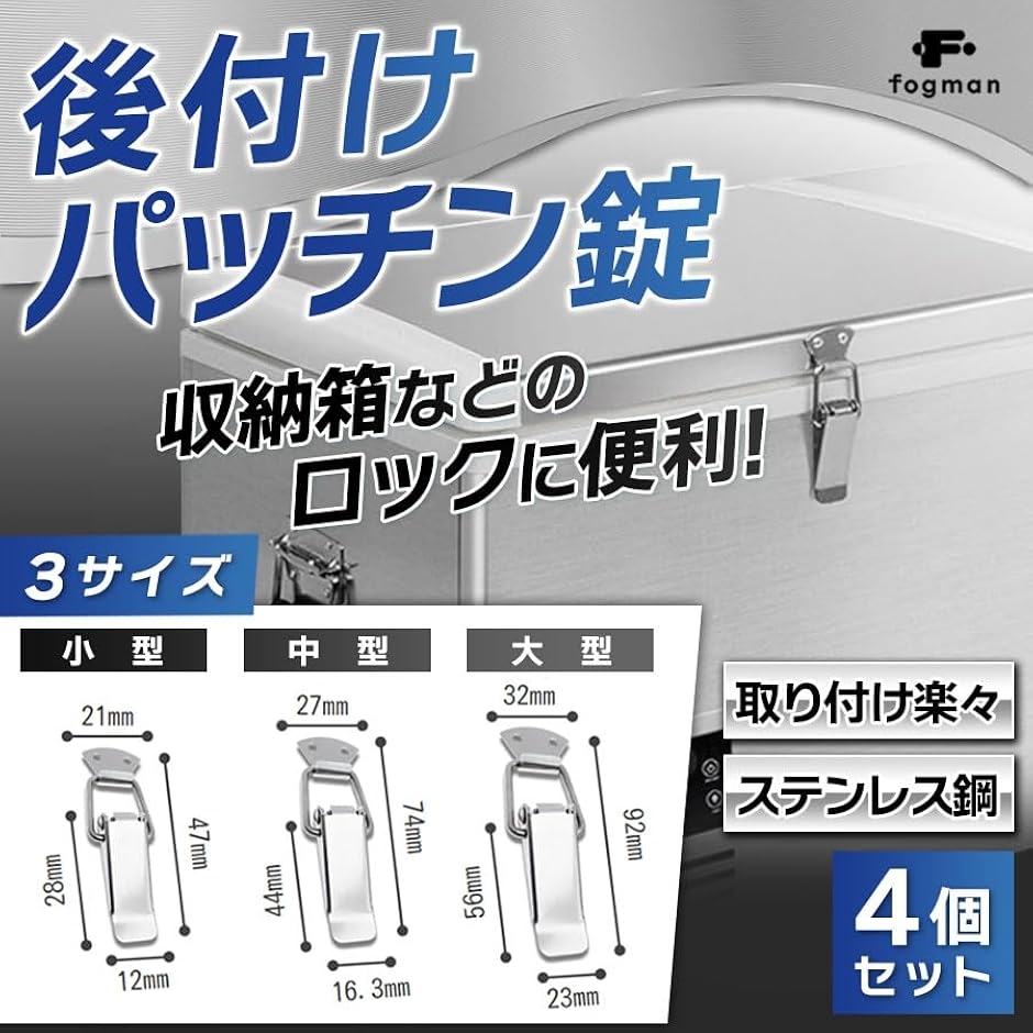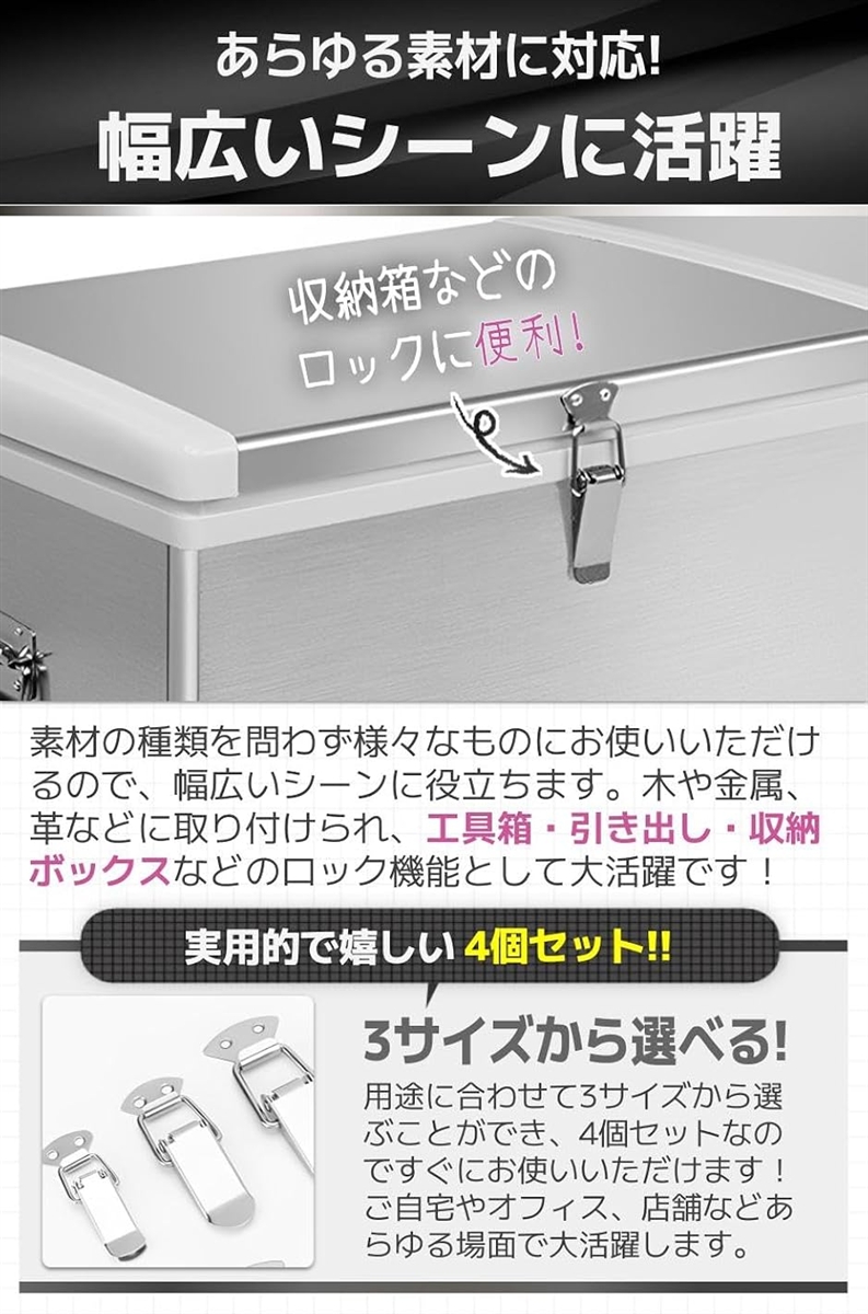| 商品名 | パッチン錠 ラッチ 固定金具 止め金具 掛け金 ステンレス ロック トグル 4個セット 小型 |