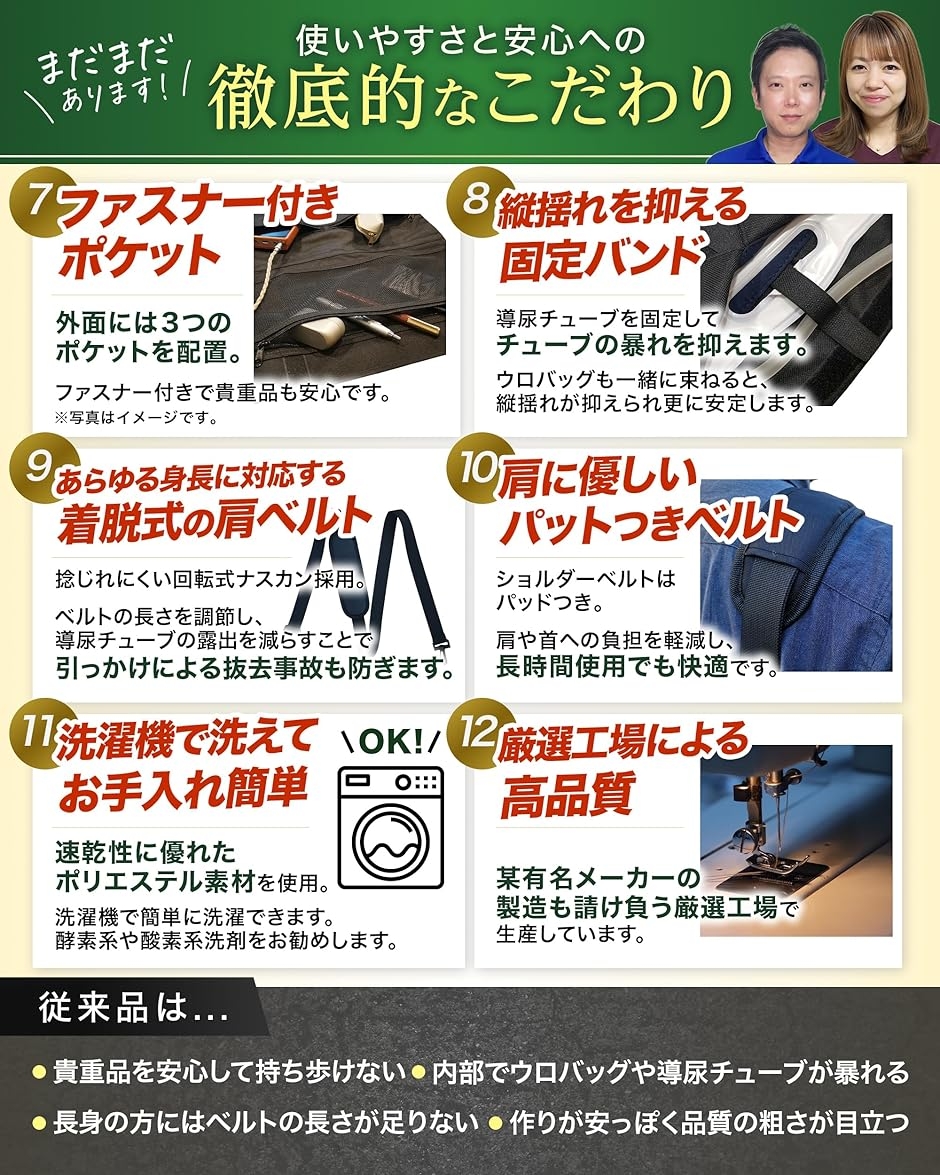 「現役の看護師・介護福祉士によるW監修」 「ウロバッグユーザーの方々に自信と自由をお届けして、たくさんの人に笑顔になってほしい」 そんな想いから生まれたウロバッグカバーです。