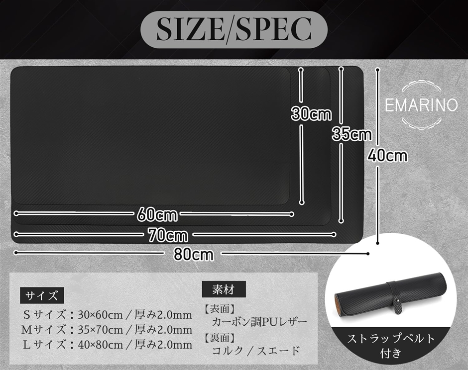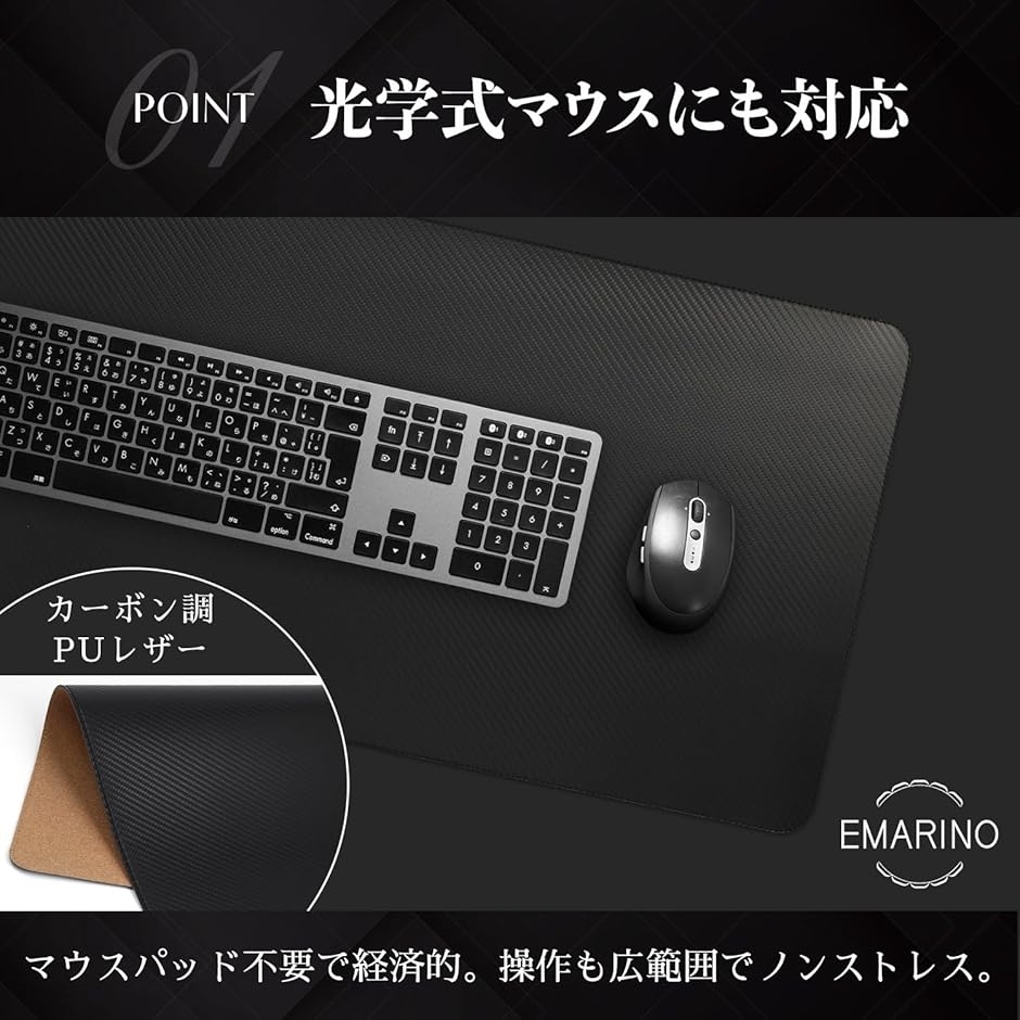 | 商品名 | デスクマット 黒 キーボードマット マウス対応 desk mat カーボンファイバー スウェード L 40x80cm |