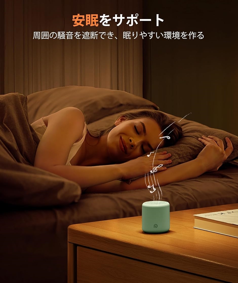 「16種類の癒やしサウンドを収録」睡眠にリラックスできる小鳥の囀り、海の波打ち、川のせせらぎ、雨の音、篝火の音、虫の鳴き声、春の雨など7種類の自然音)が用意し、赤ちゃんの向け音(睡眠オルゴール、シューベルトの子守唄、「すーすー」の音)が収録され、集中力アップに効果のあるホワイトノイズとファン音も3曲別々備えています。