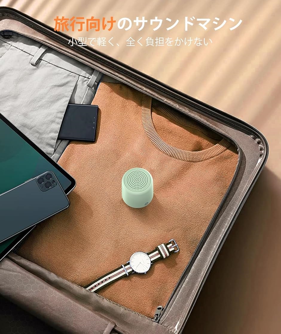 「ミニホワイトノイズマシン」50g軽量タイプで、4.3x4.3x4.8cmの超小型のホワイトノイズマシンは持ち運び便利で、自宅だけでなく、外泊/旅行/出張にも良質の睡眠をサポートできます。