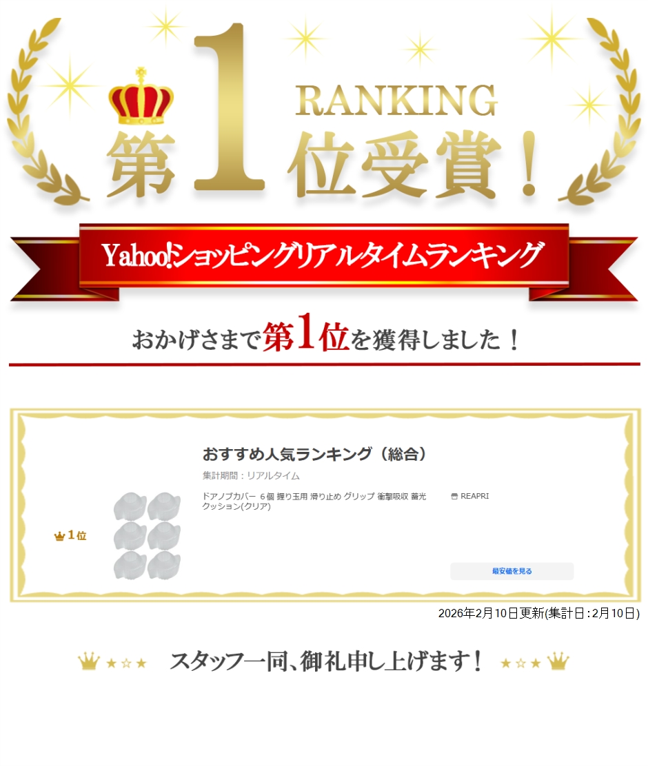 | 商品名 | ドアノブカバー 6個 握り玉用 滑り止め グリップ 衝撃吸収 蓄光 クッション クリア |