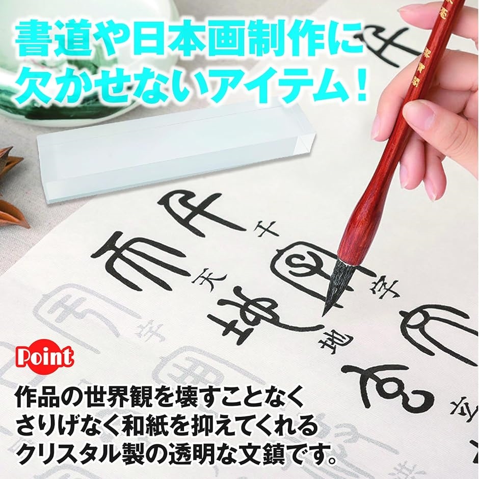 作品の世界観を壊すことなく、さりげなく和紙を抑えてくれる、クリスタル製の透明な文鎮、ペーパーウェイトです。