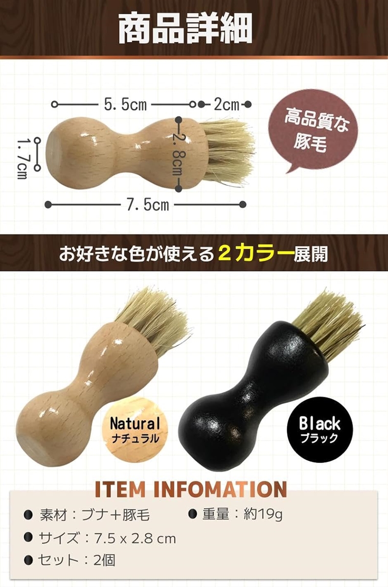 | 商品名 | 靴磨きブラシ 豚毛ブラシ 使いやすい お手入れ 手を汚さない 小型 軽量 2種セット |