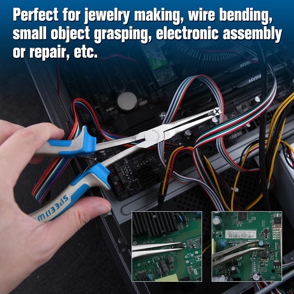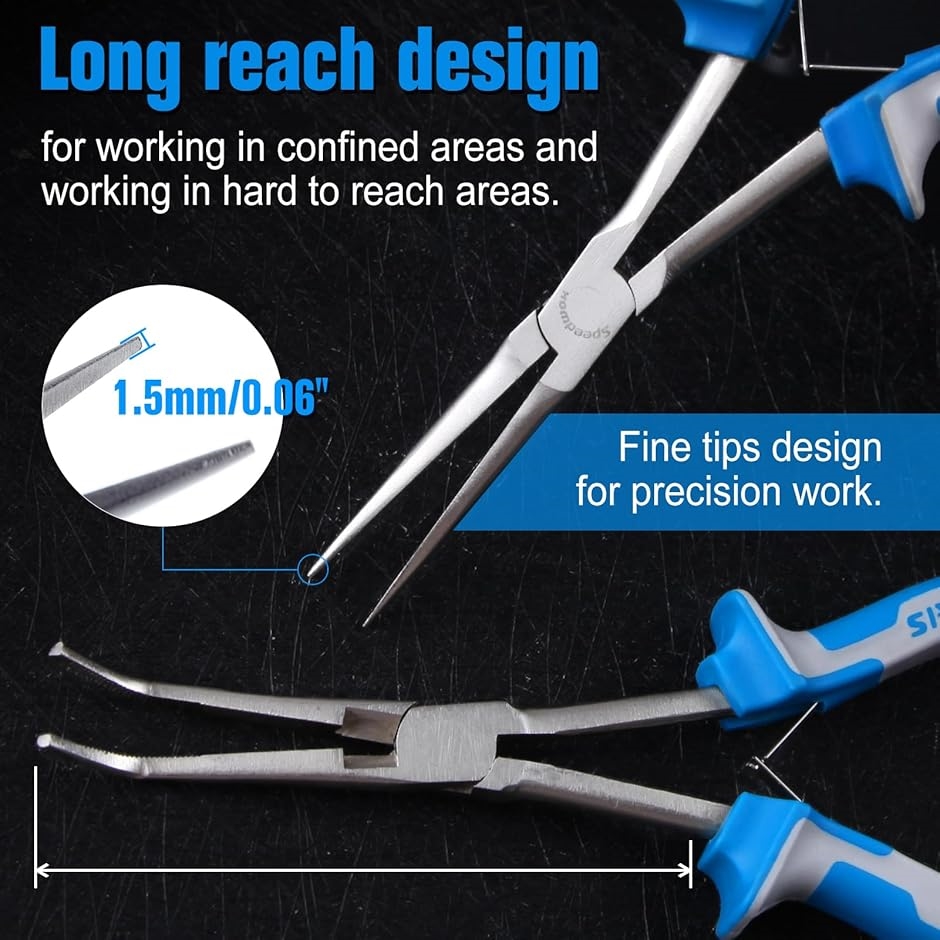 「用途」ロングタイプは、狭い箇所でも簡単かつ正確に操作でき、精密機器の修理や組み立て、宝飾品製造、コイル巻きなどの作業に使用できます。