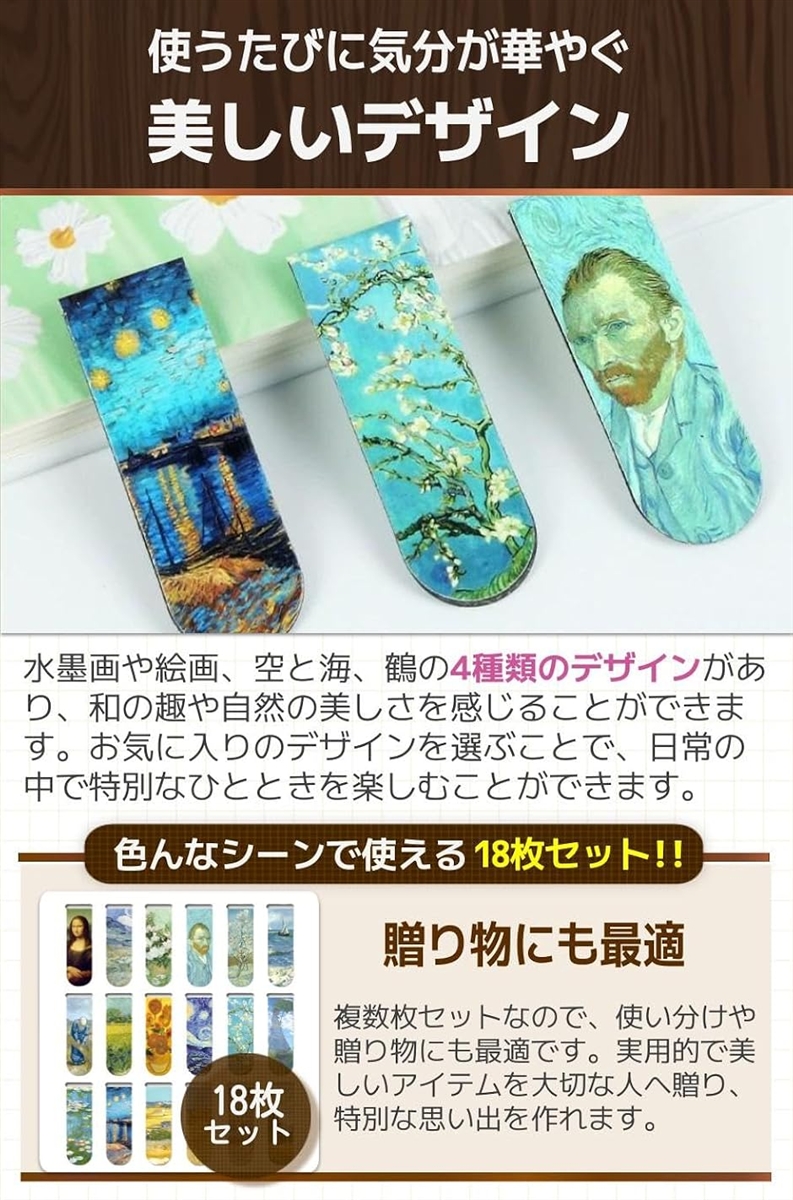 | 商品名 | しおり 本 おしゃれ ブックマーク 名画 マグネット 磁石 栞 18枚セット |