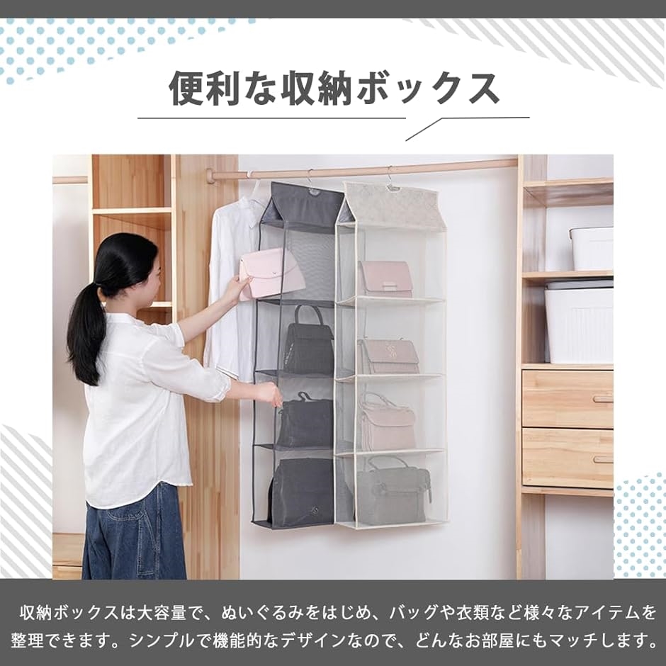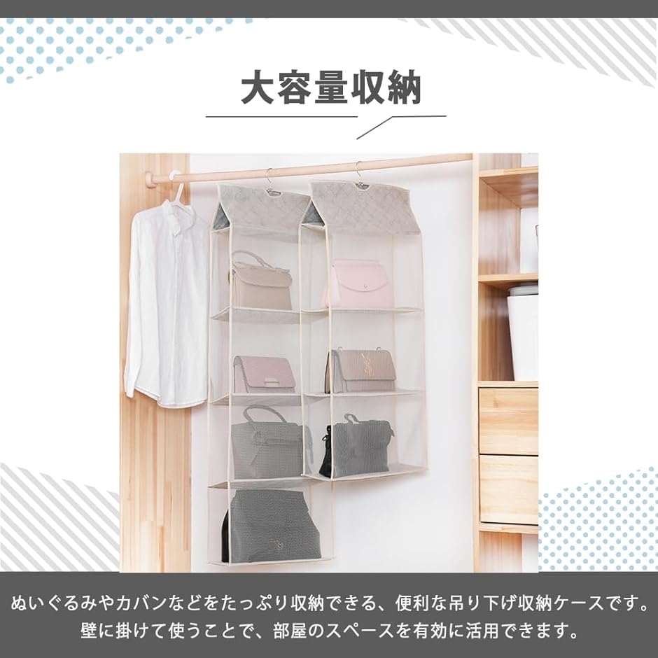 「大容量収納」ぬいぐるみやカバンなどをたっぷり収納できる、便利な吊り下げ収納ケースです。