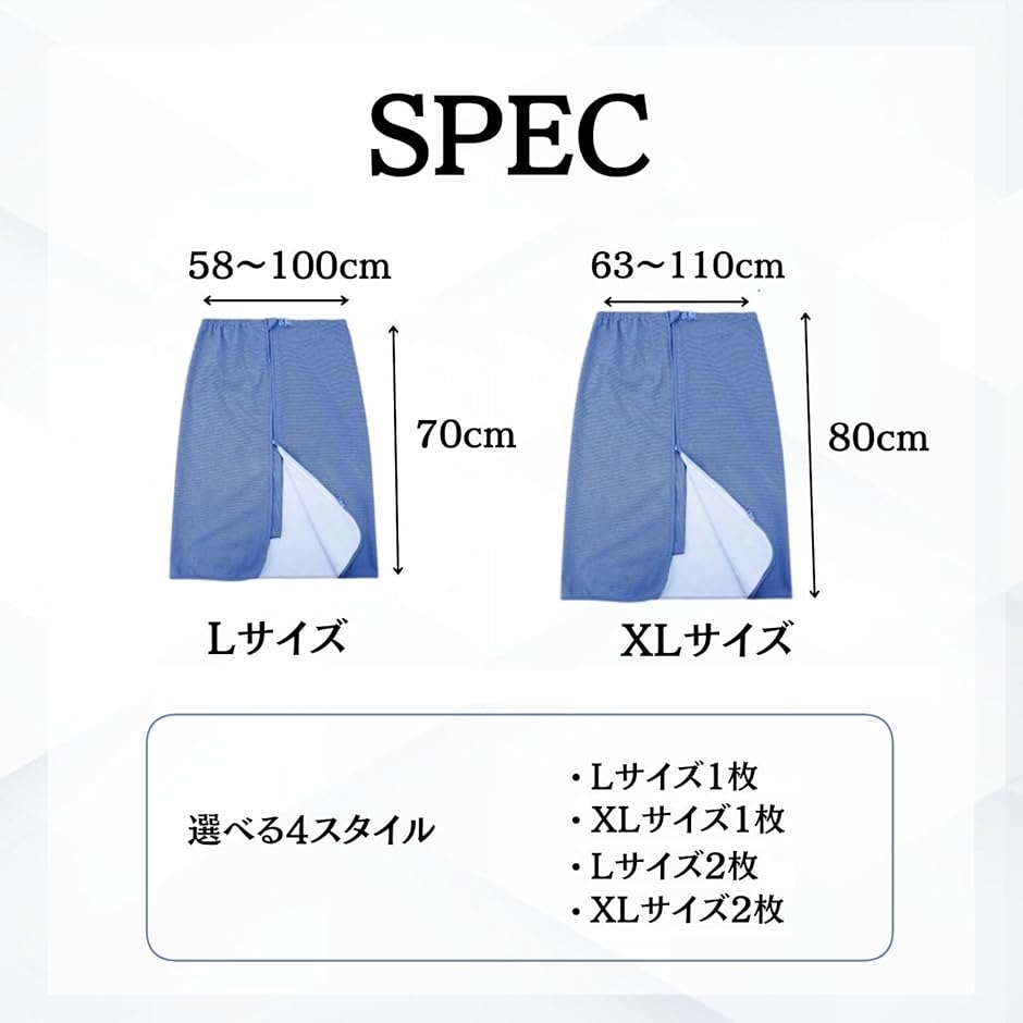 Lサイズ(ウエストは58〜100cm、長さ70cm)XL(ウエストは63〜110cm、長さ80cm)