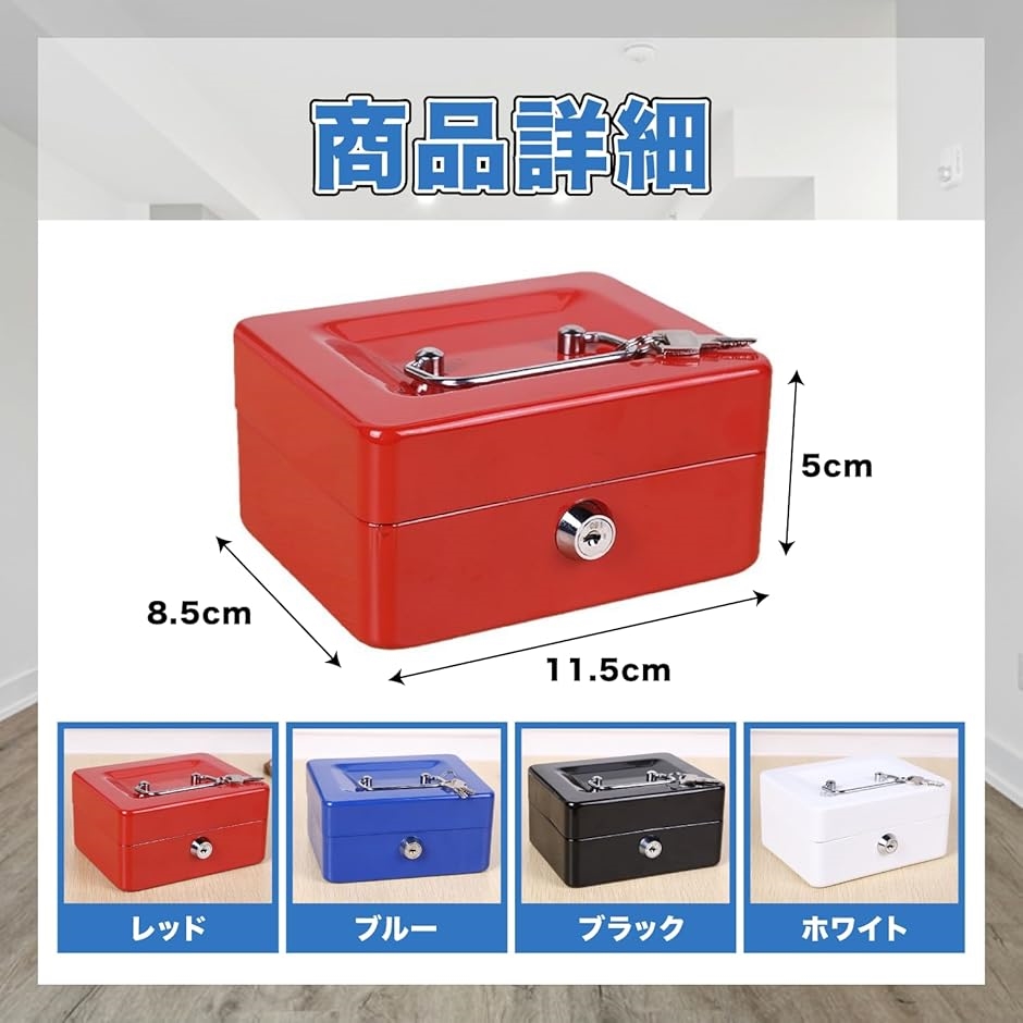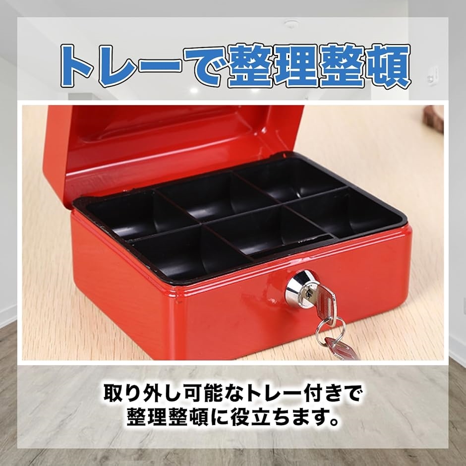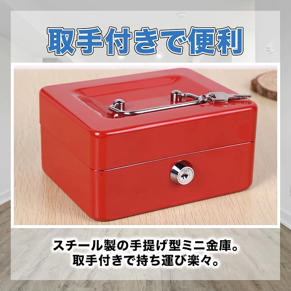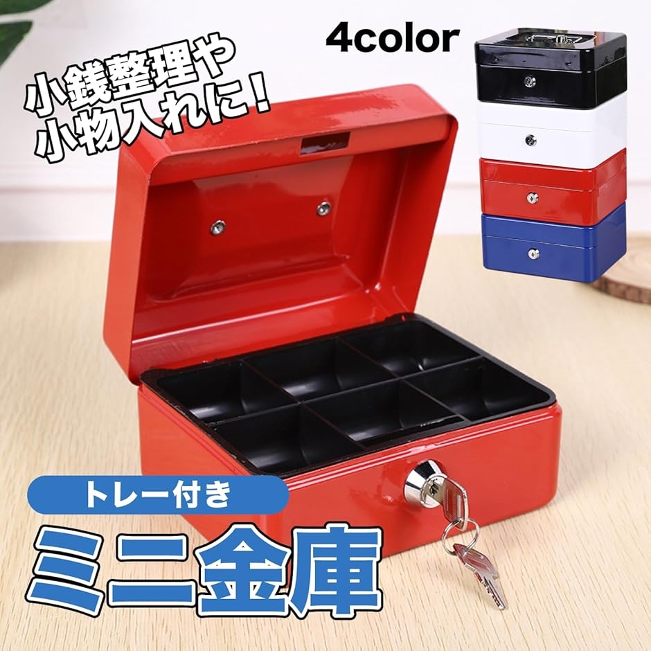 | 商品名 | ミニ金庫 鍵付き 手提げ 貯金箱 金属製 ミニサイズ トレー付き |