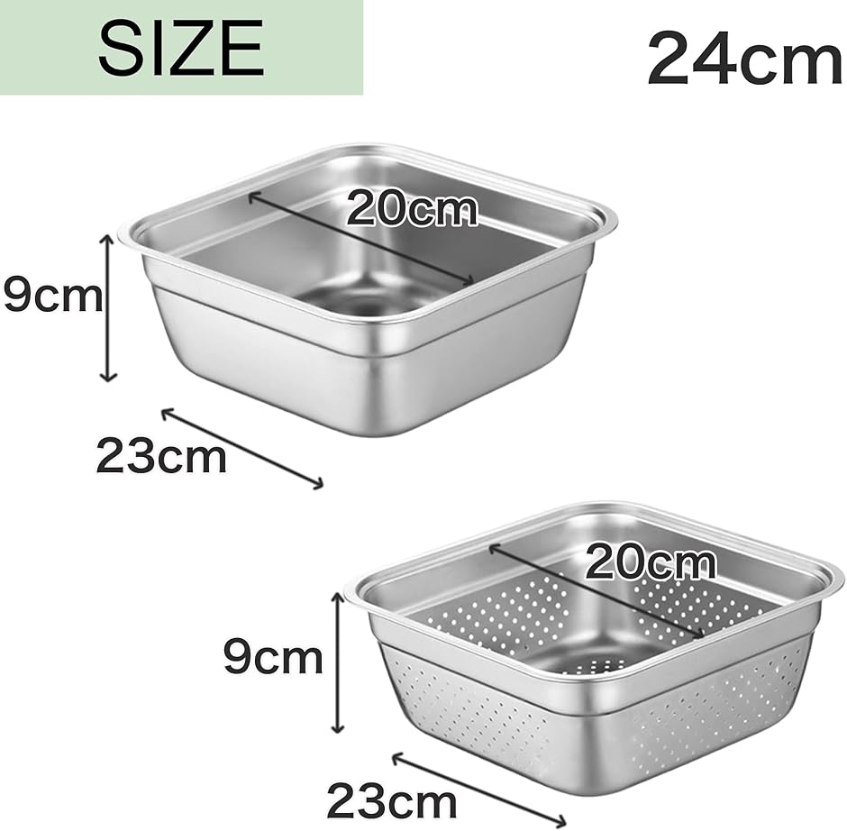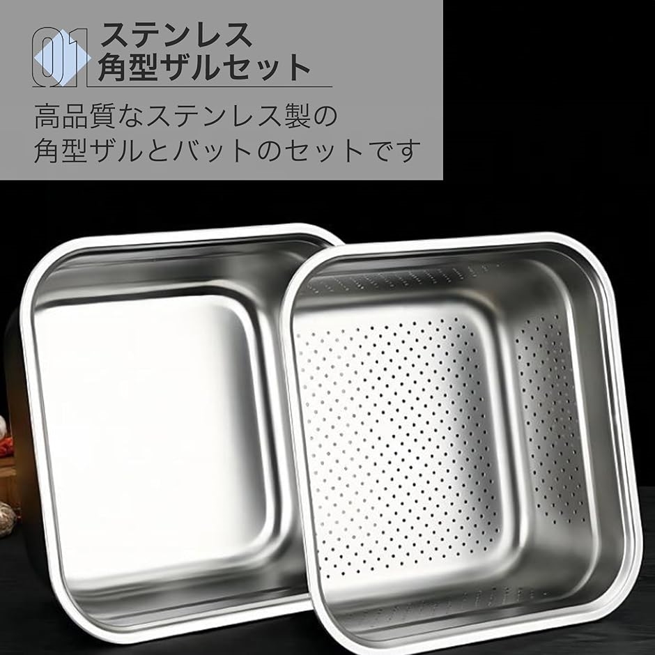 | 商品名 | ざるボウルセット 四角 保存容器 角バット 食洗機対応 下ごしらえ 角型デザイン 省スペース ステンレス製 ボウル+ザル |