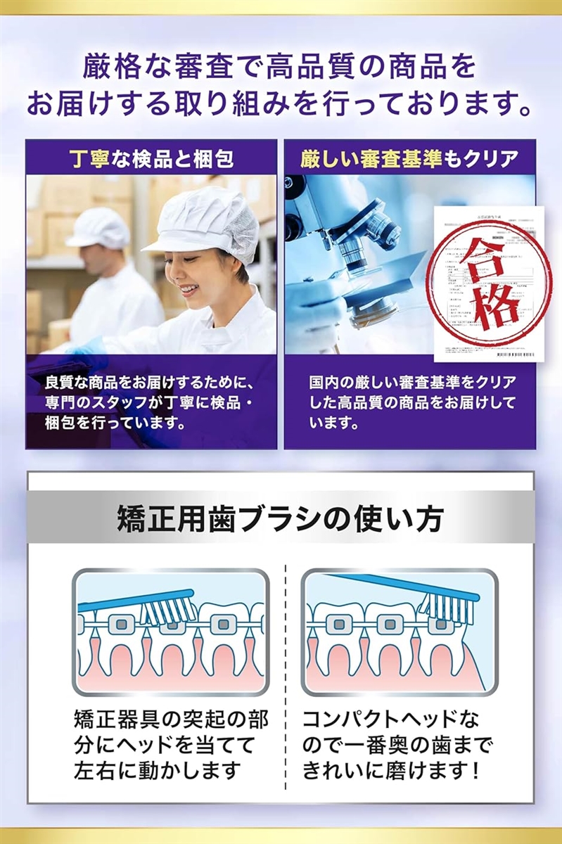 そんな開発者が同じ悩みを持つ矯正中の方向けに、ワイヤー矯正中でも簡単に歯みがきできる歯ブラシを開発しました。