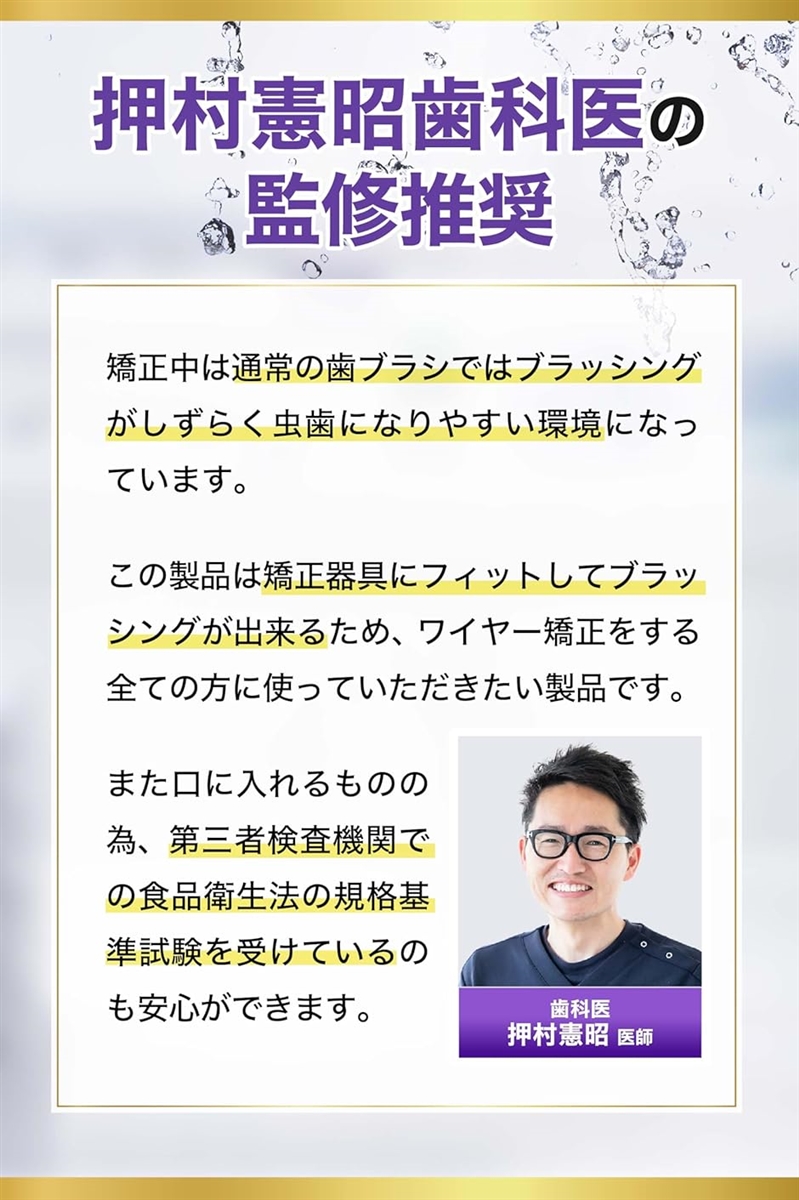 「矯正用のハミガキに」 矯正中はワイヤーが邪魔になり歯磨きがうまく出来ず苦労されると思います。
