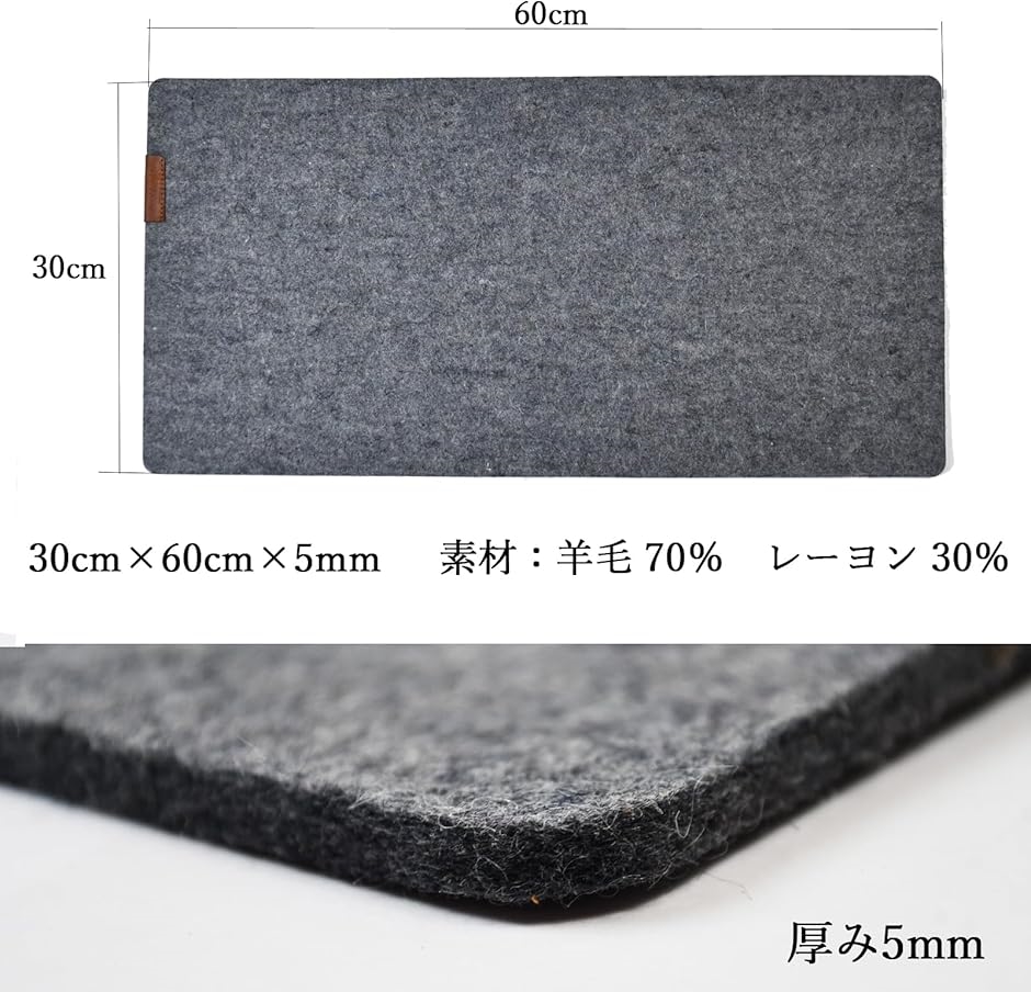 | 商品名 | atelierCODEL デスクマット フェルト 極厚5mm 羊毛が音を吸収 キーボードマット マウス対応 PC 日本製 |