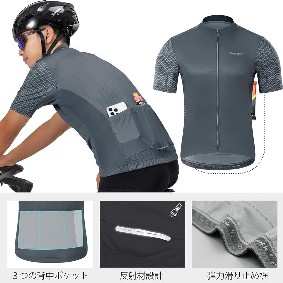 | 商品名 | サイクルジャージ 半袖 メンズ サイクルウェア サイクリング 自転車 ロードバイク 夏 吸汗速乾 通気 弾力 グレー 3XL |