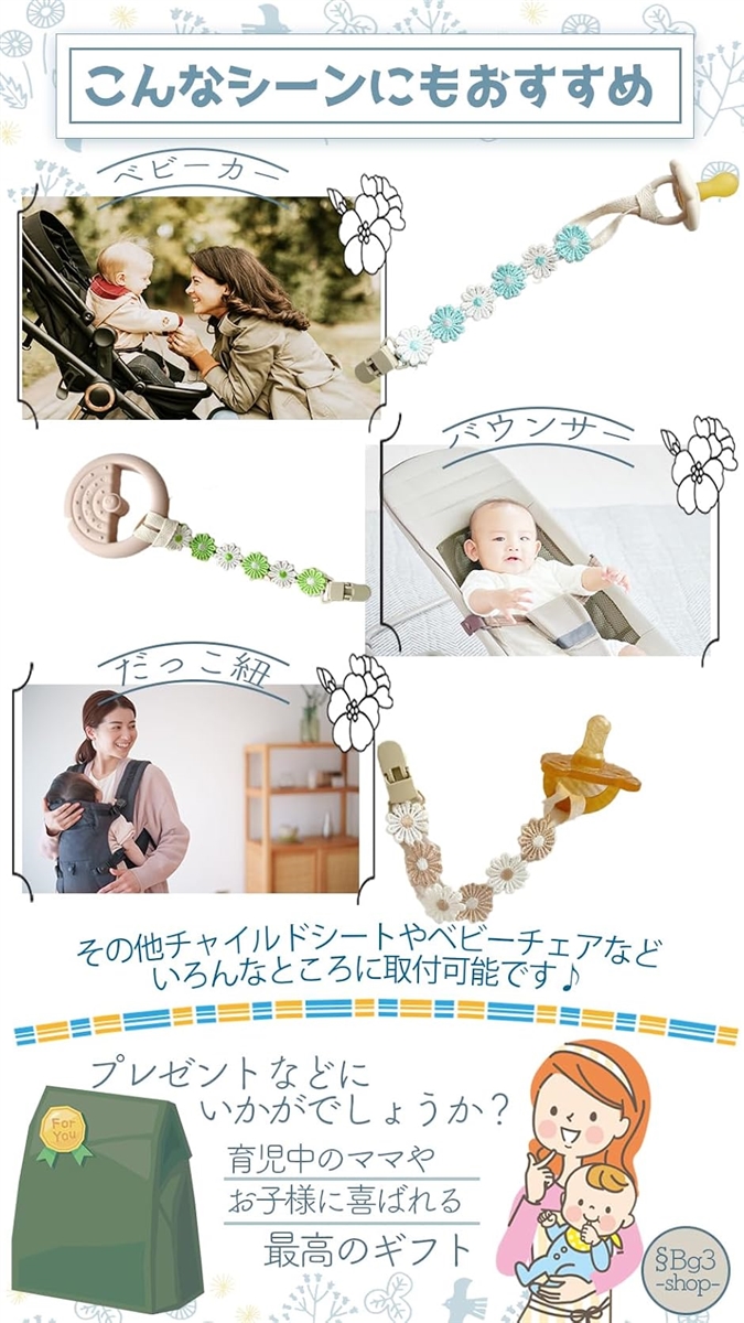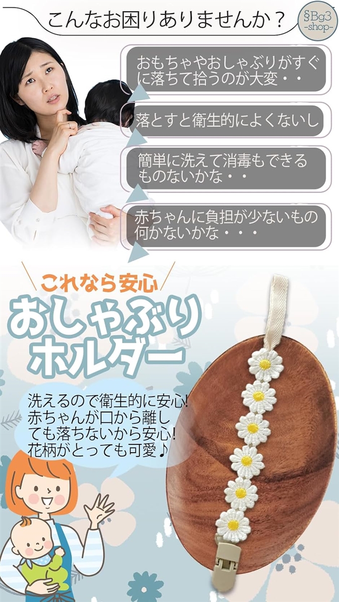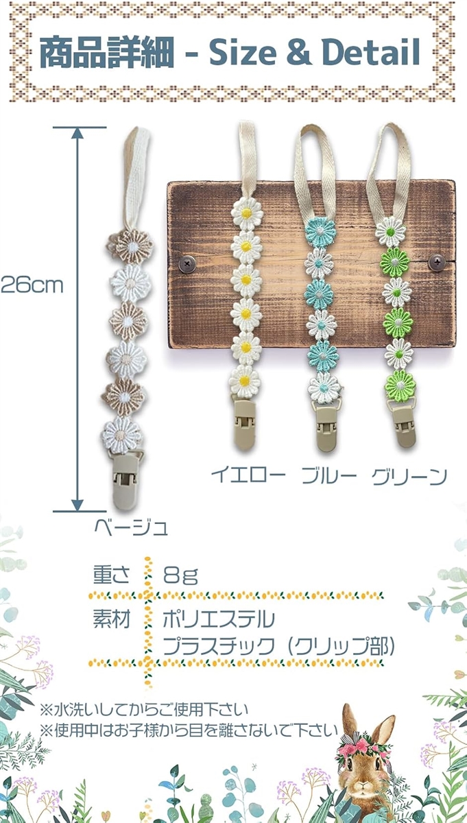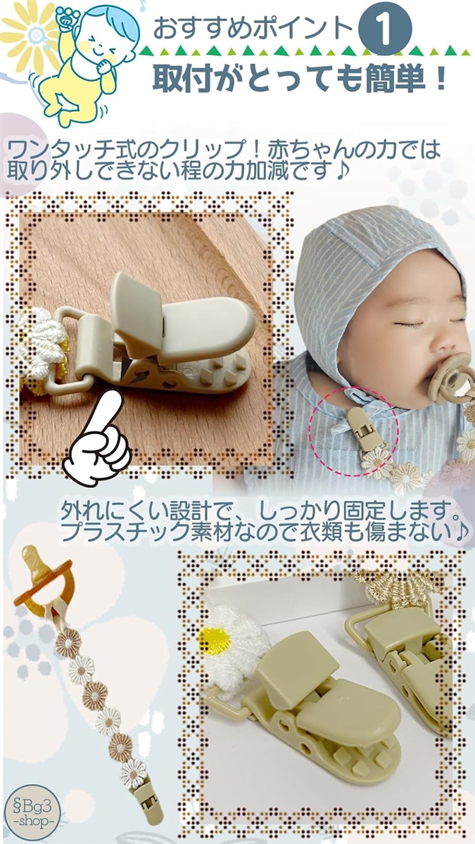 | 商品名 | おしゃぶりホルダー 2本セット おしゃぶりストラップ クリップ デイジー |