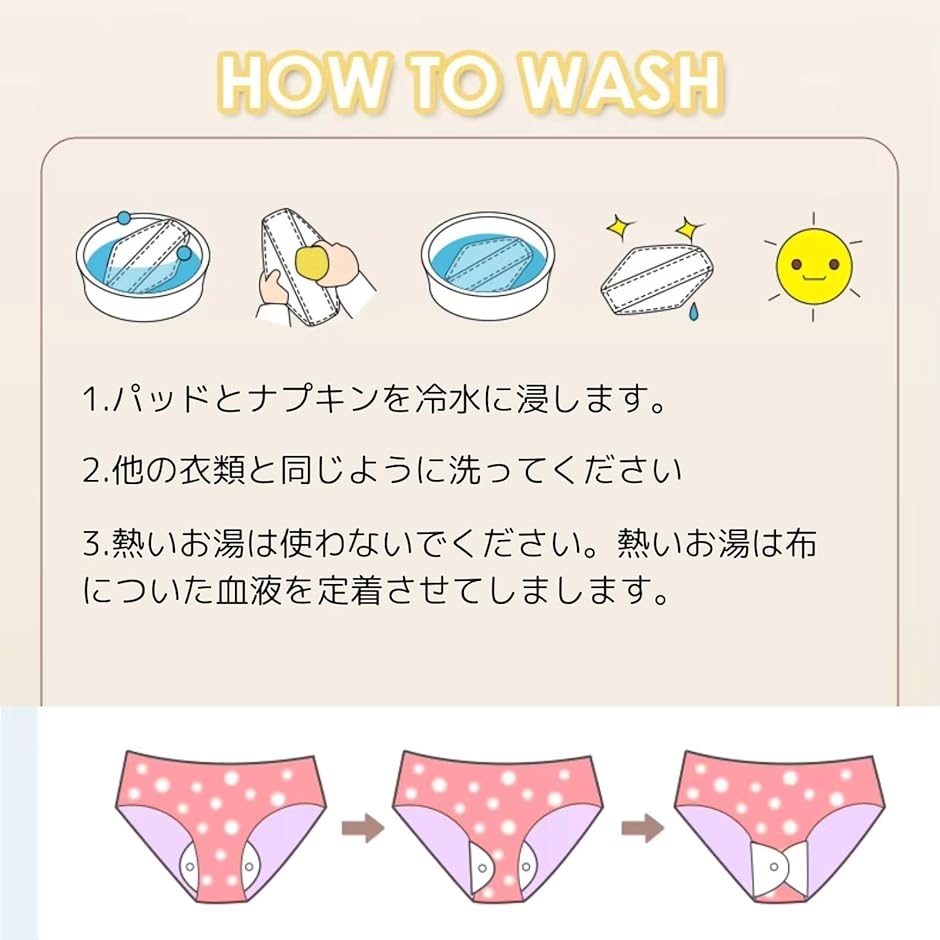 「再利用可能&洗濯可能」再利用できる生理用ナプキンは、洗濯機で簡単に洗えます。