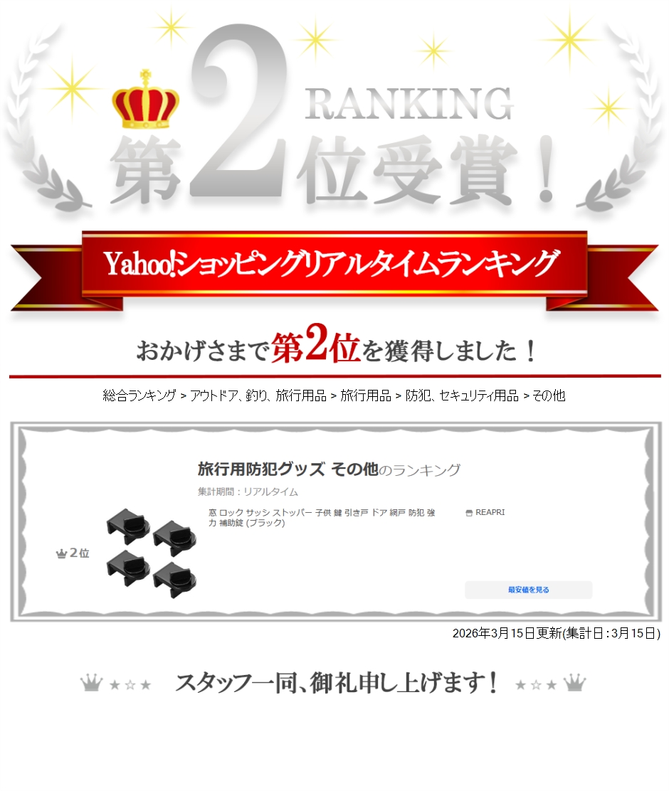 | 商品名 | 窓 ロック サッシ ストッパー 子供 鍵 引き戸 ドア 網戸 防犯 強力 補助錠 |