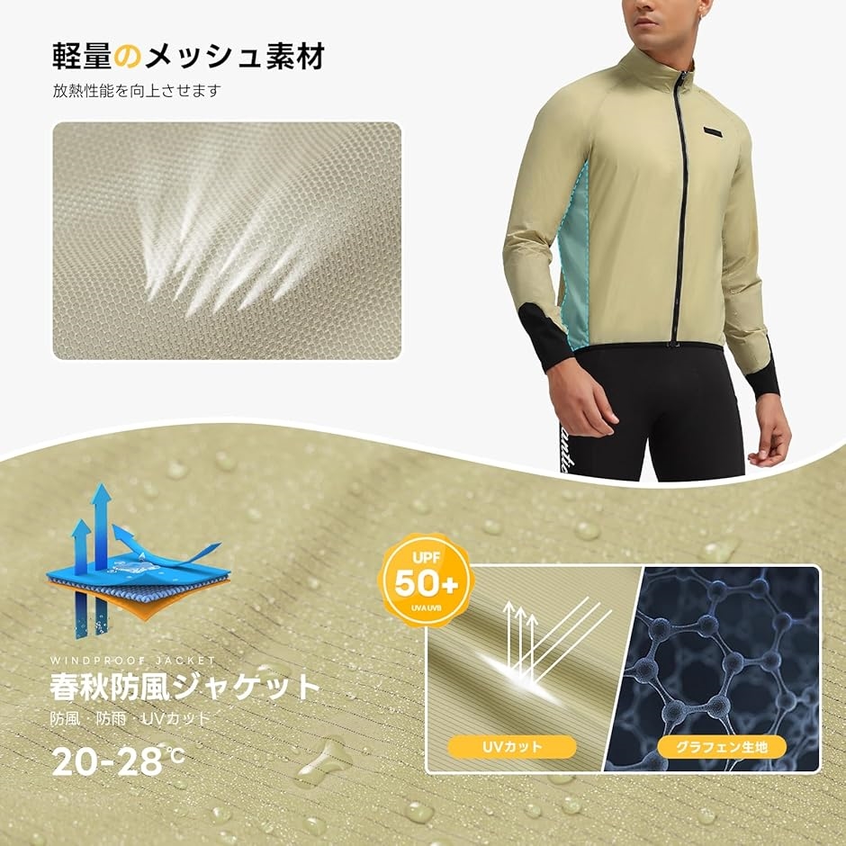 | 商品名 | サイクルジャケット 長袖 メンズ サイクルジャージ ウインドブレーカー ロードバイク 撥水 春秋 防風 軽量 自転車用 収納可能 |
