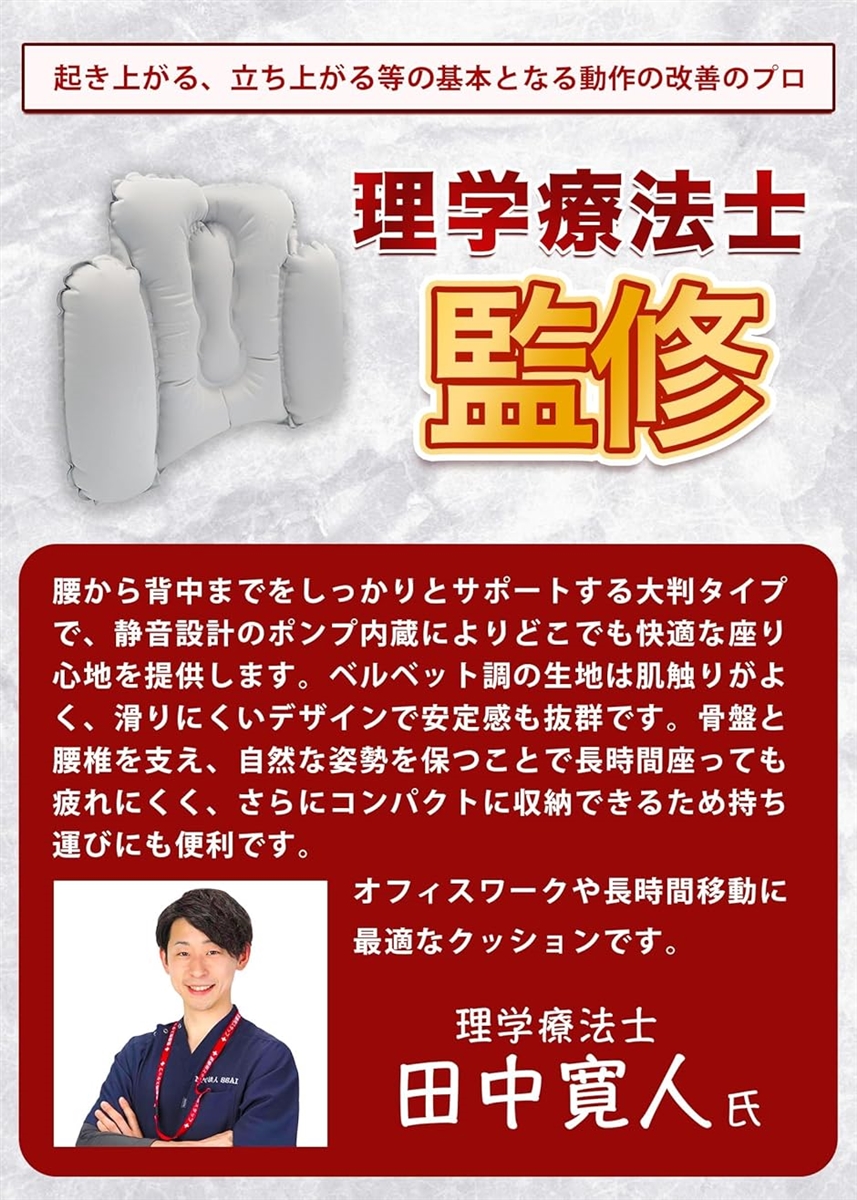 「身体のプロ「理学療法士」が監修」体の専門家である理学療法士の方と共に製品開発を行っております。