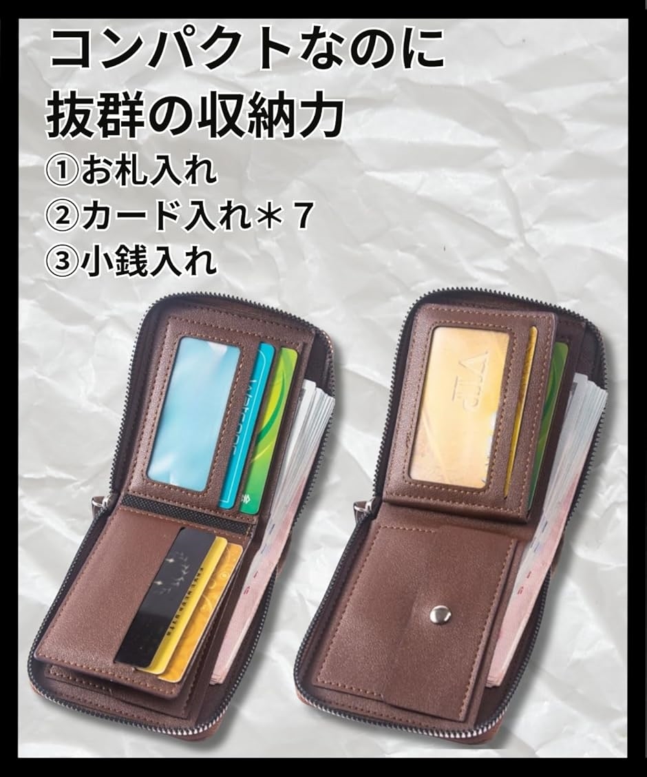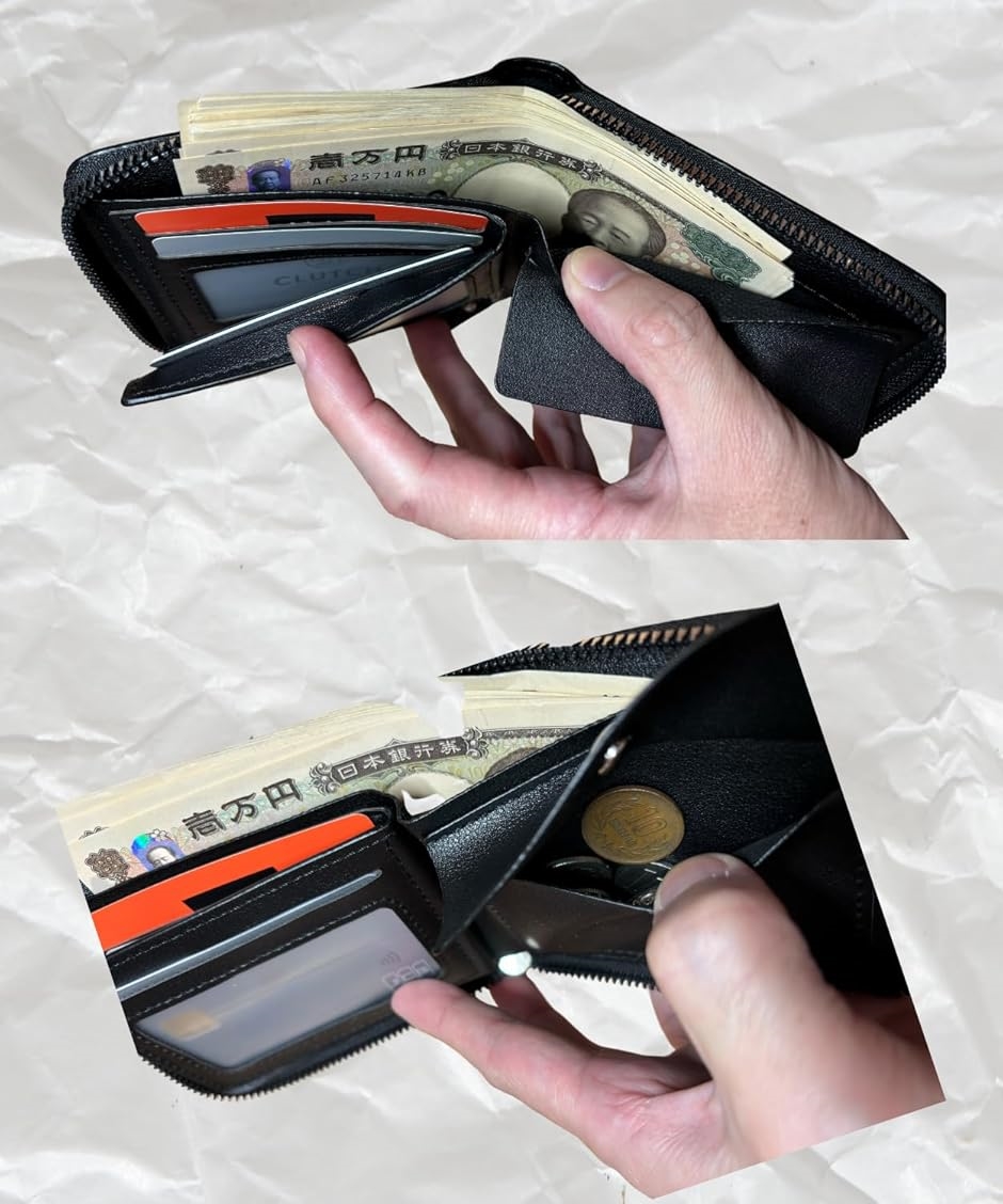 本商品は「大容量収納」を提供し、複数のカードスロットとジップポケットにより、クレジットカードや現金、その他の貴重品を一つの財布にまとめて収納可能です。