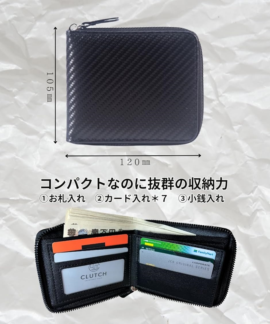 | 商品名 | 財布 メンズ 二つ折り財布 カーボンファイバー調 ビジネス ジッパー付き スリム puレザー カードケース 小銭入れ おしゃれ ミニ財布 小さい |