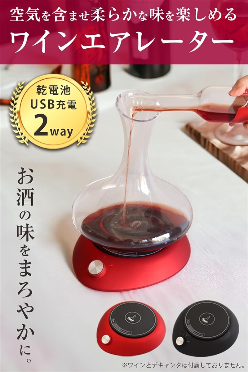乾電池/USBの2WAY使用可能で便利なワインエアレーターです。