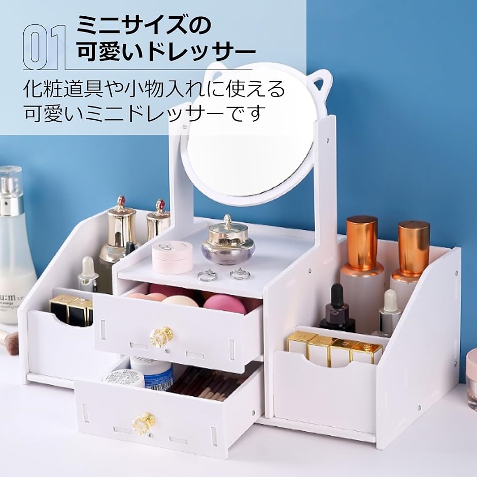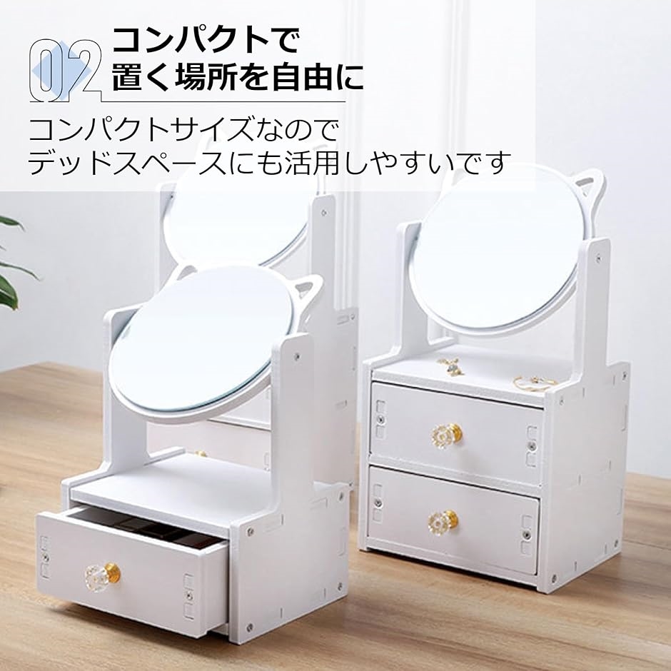 | 商品名 | ドレッサー 化粧台 鏡 ミラー 鏡台 卓上 メイク台 かわいい 組み立て 引き出し付き 角度調整可 おしゃれ ホワイト タイプA |