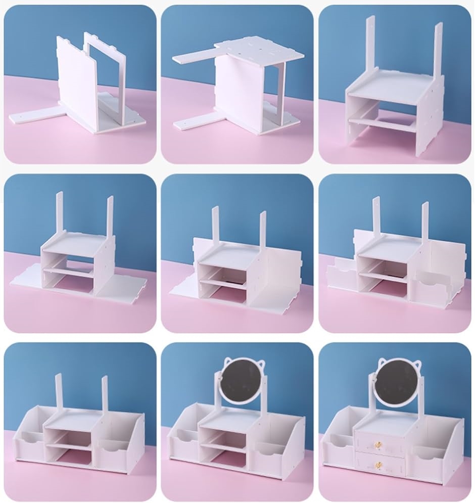 シンプルなホワイトカラーで、猫耳や四角デザインのミラーで化粧をお楽しみいただけます。