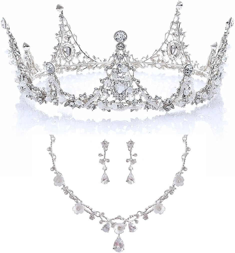「サイズ」ティアラ:幅15cm・高さ6cm イヤリング・ピアス:長さ5cm ネックレス:長さ45〜50cm(調節可能)