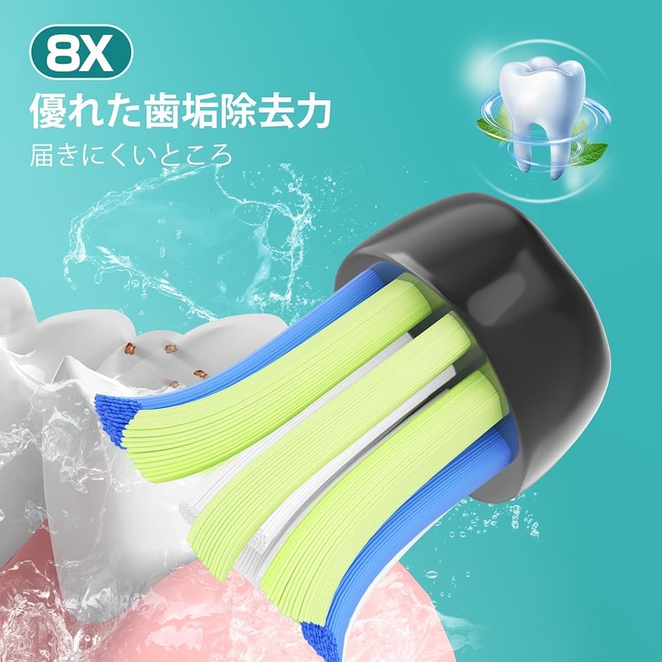 毛が密集した(従来より20%増加)フィリップス ソニッケアー 互換のブラシヘッドは、ブラッシング接触面積を最大化して、波状のヘッド部分が歯の表面のカーブにぴったりとフィットし、表面の8倍xの歯垢を簡単に取り除きるだけなく、届きにくい部分をしっかり歯垢を除去します。