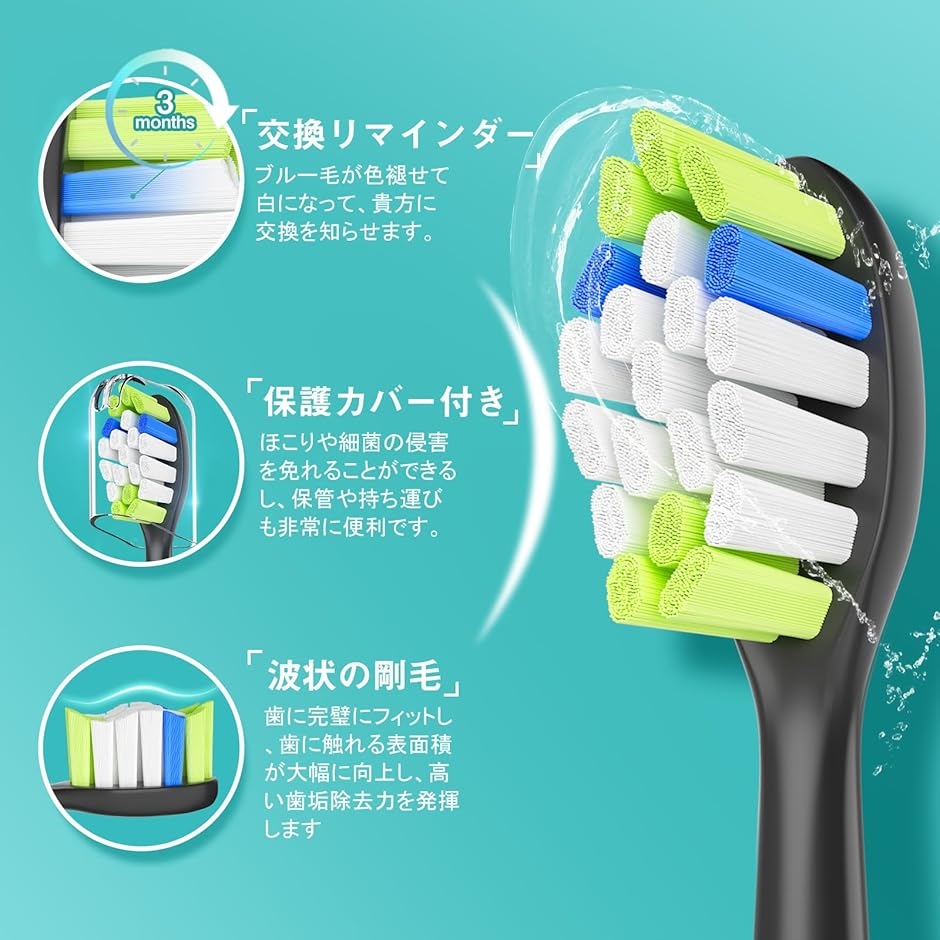 | 商品名 | 互換品2024進化モデル 電動歯ブラシ 替えブラシ フィリップス ソニッケアー 電動歯ブラシ 互換の 替えブラシ : ダイヤモンドクリーン イージークリーン ホワイトプラス プロテクトクリーン C2 C1 G2 G3 W2など対応 philips sonicare 用の 歯ブラシ 替え 大人用 プレゼント 8本 黒 |