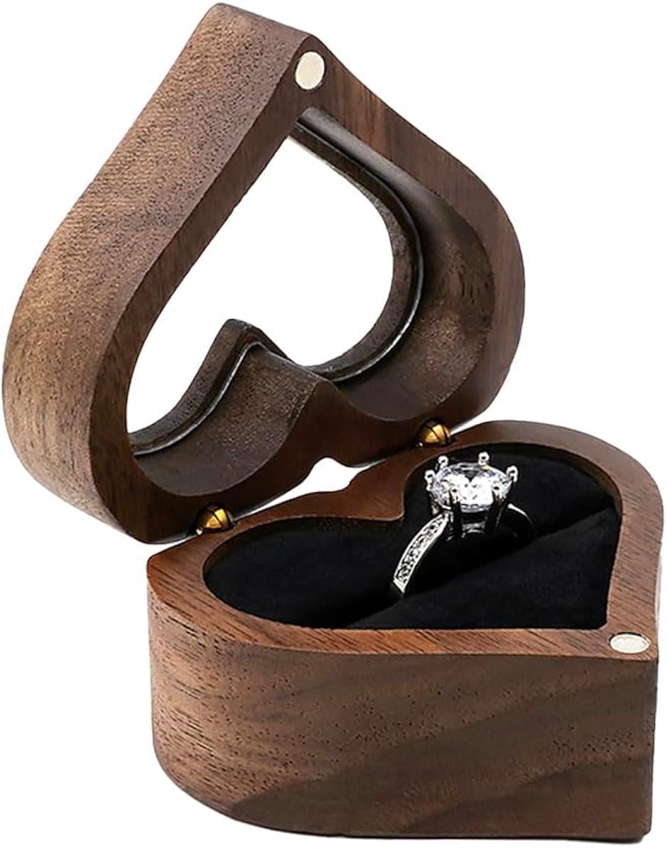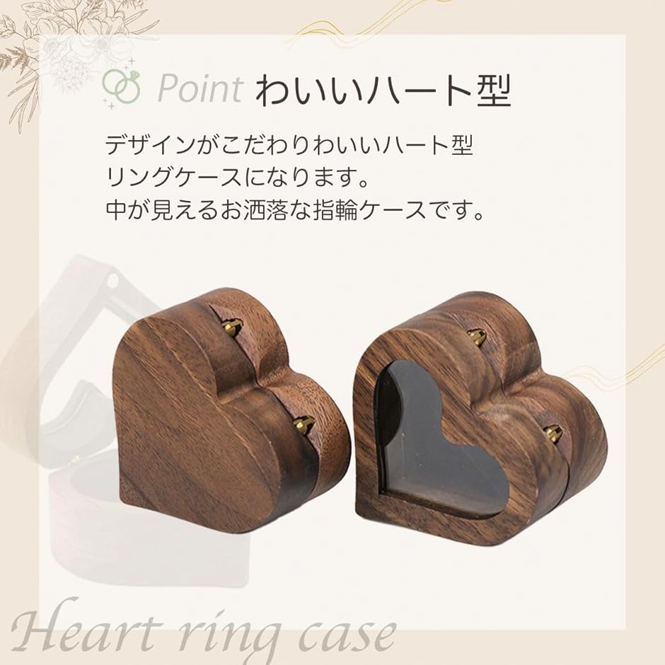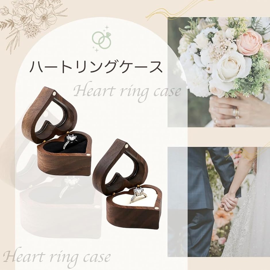 「ロマンチック」愛の証を美しく演出するハート型の木製リングケース。
