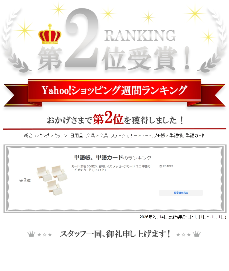| 商品名 | カード 無地 300枚入 名刺サイズ メッセージカード ミニ 単語カード 暗記カード ホワイト |