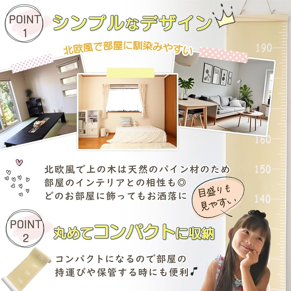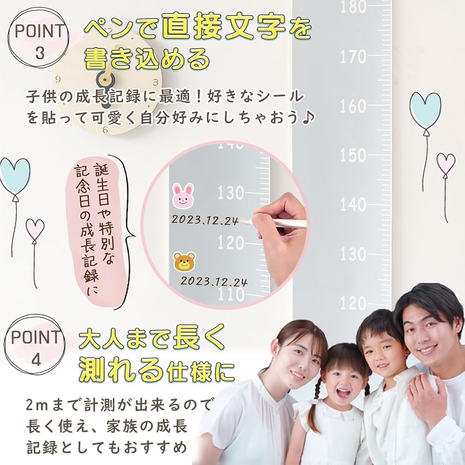 「特徴」お子様の成長の節目節目を記録するのに最適で、直接ペンで身長を書き込んで残すことができます。