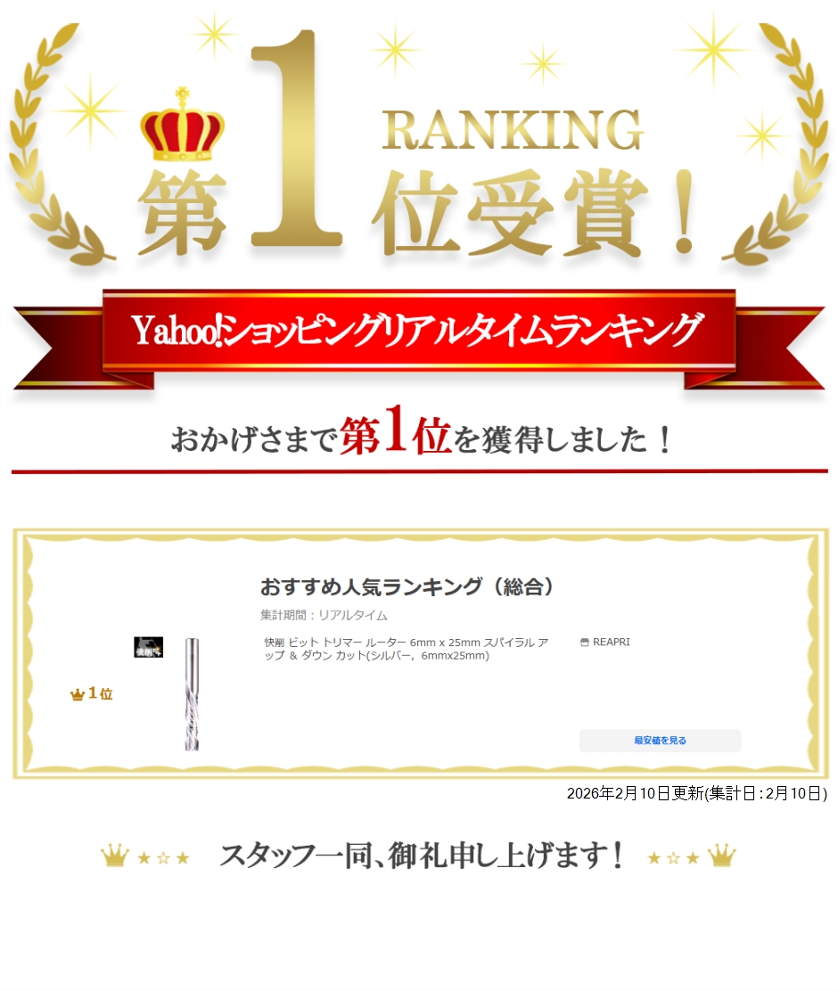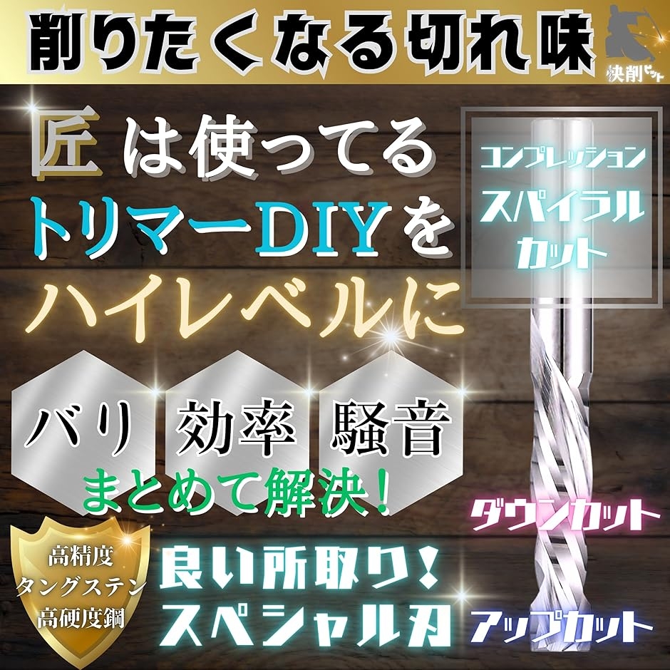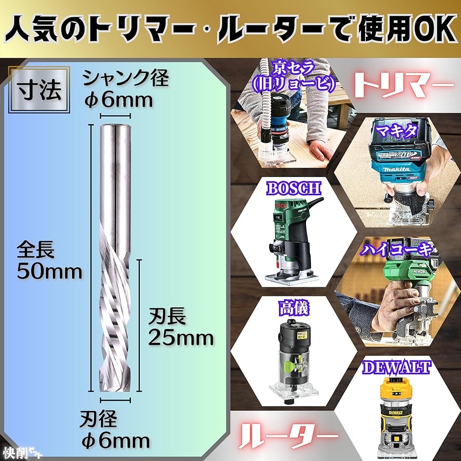 | 商品名 | 快削 ビット トリマー ルーター 6mm x 25mm スパイラル アップ & ダウン コンプレッション カット 専用ケース付 アップ&ダウンカット |