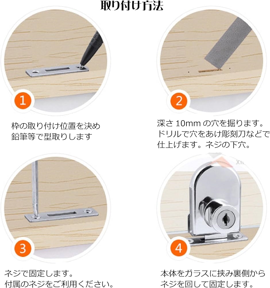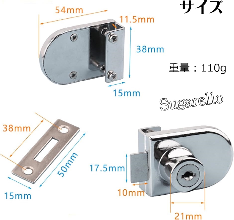 | 商品名 | ガラスドアロック ガラス扉ロック ショーケースロック 補助錠 錠前 ガラスキャビネット錠 ドアロック セキュリティ 引き出しロック 片開き用 |