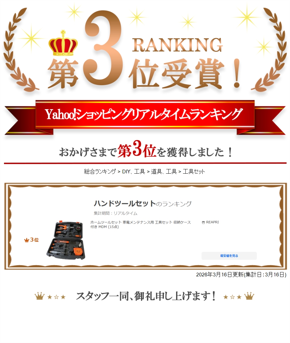 | 商品名 | ホームツールセット 家電メンテナンス用 工具セット 収納ケース付き 15点 |