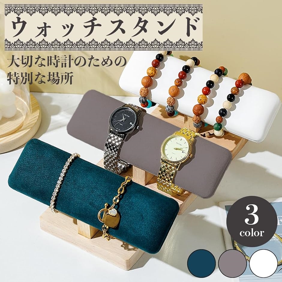| 商品名 | 腕時計 スタンド ウォッチスタンド 高級 置時計 時計スタンド 木製 複数 2本用 グレー |