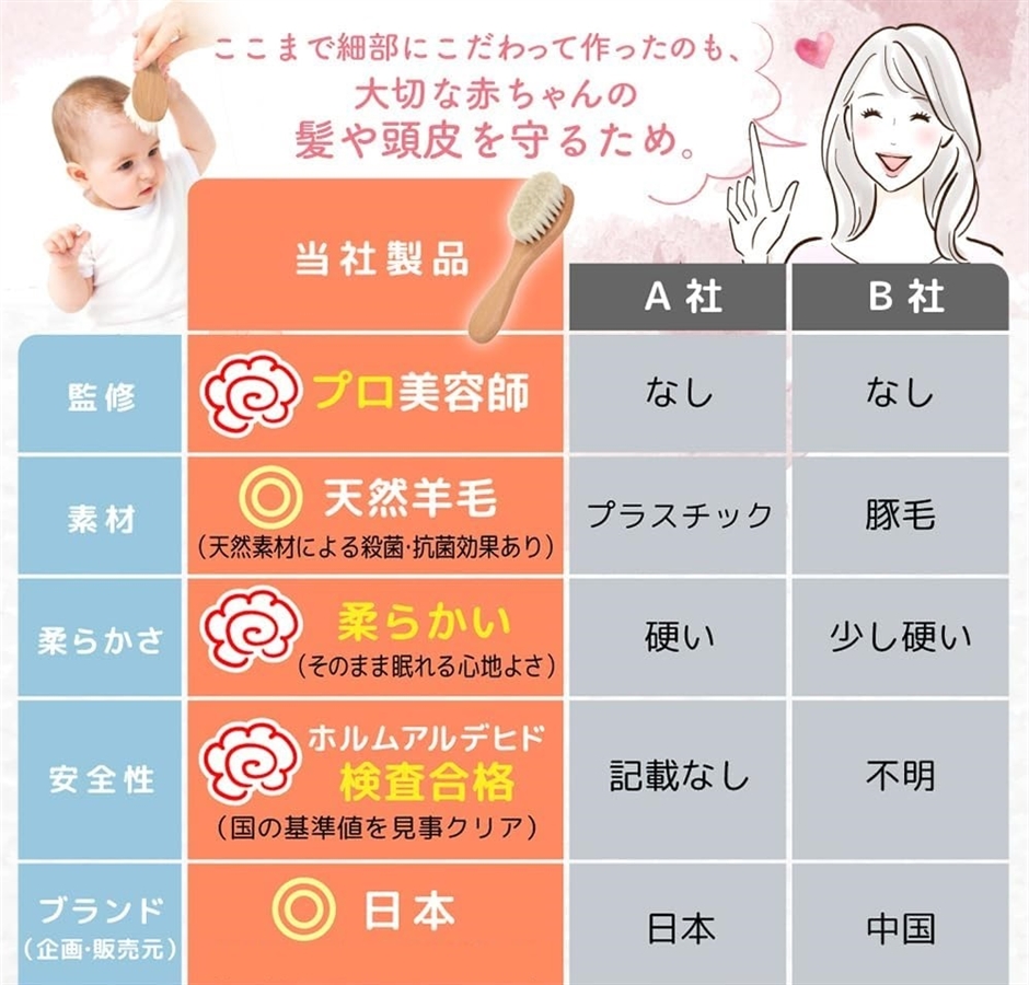 いろいろな髪のトラブルを見てきたからこそbabyブラシを推奨しています。