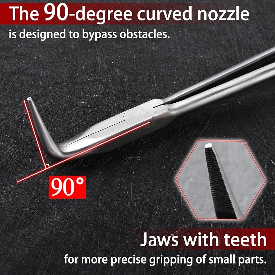 「デザイン」グリップ部分は滑りにくくなっており、先端が90度に曲がっているため、障害物がある場合でも部品や端子を掴むことができますので、ぜひ充実したDIYライフにお役立てください。