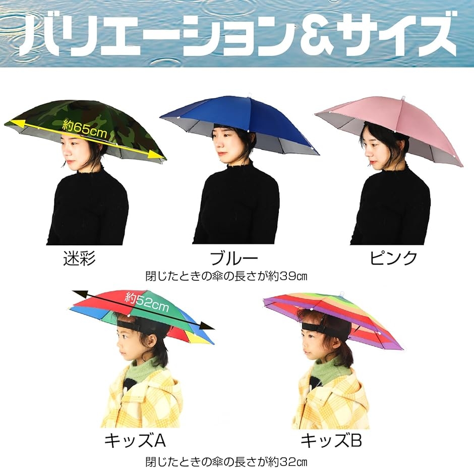 | 商品名 | かさぼうし 頭にかぶる傘 折りたたみ 日傘 uvカット 紫外線 レジャーハット 釣り傘 アンブレラ ハット 折り畳み式 ブルー 65cm |