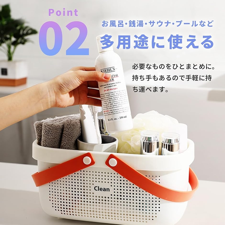「多用途に使える」お風呂・銭湯・サウナ・プールでのバス用品を収納する便利なバスケットです。
