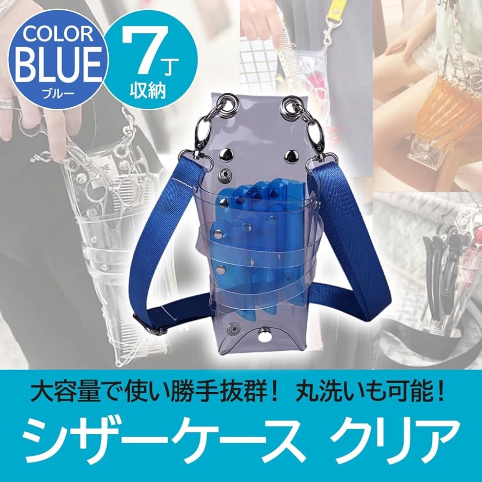 | 商品名 | シザーケース 透明クリア 7丁収納 軽量 肩掛け腰掛け可能 美容師トリマー向け ブルー |