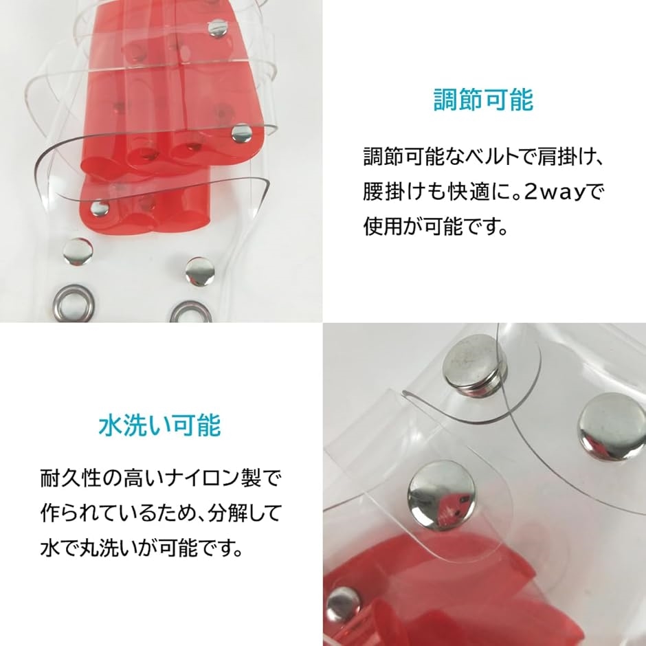 調節可能なベルトで、肩掛け・腰掛けの2way使用が可能です。