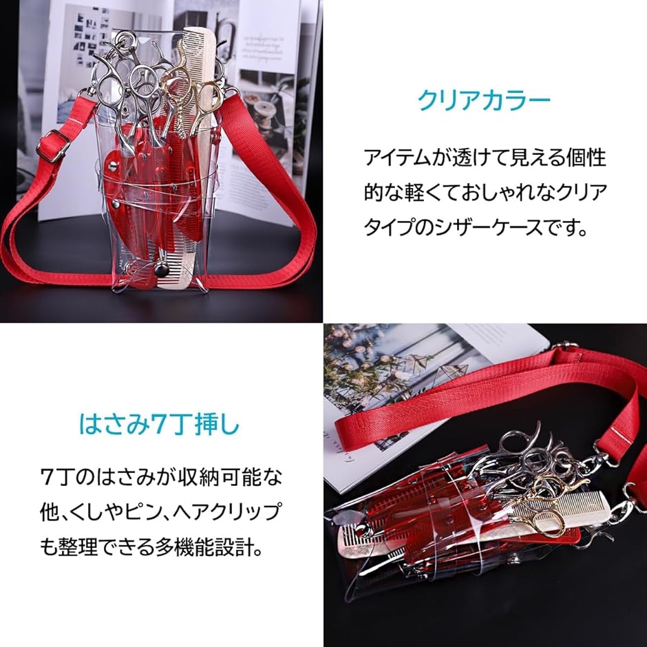 | 商品名 | シザーケース 透明クリア 7丁収納 軽量 肩掛け腰掛け可能 美容師トリマー向け パープル |