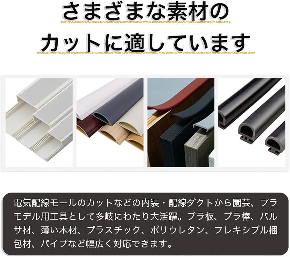 「使い方たくさん」電気配線モールのカットなどの内装・配線ダクトから園芸、プラモデル用工具として多岐にわたり大活躍。